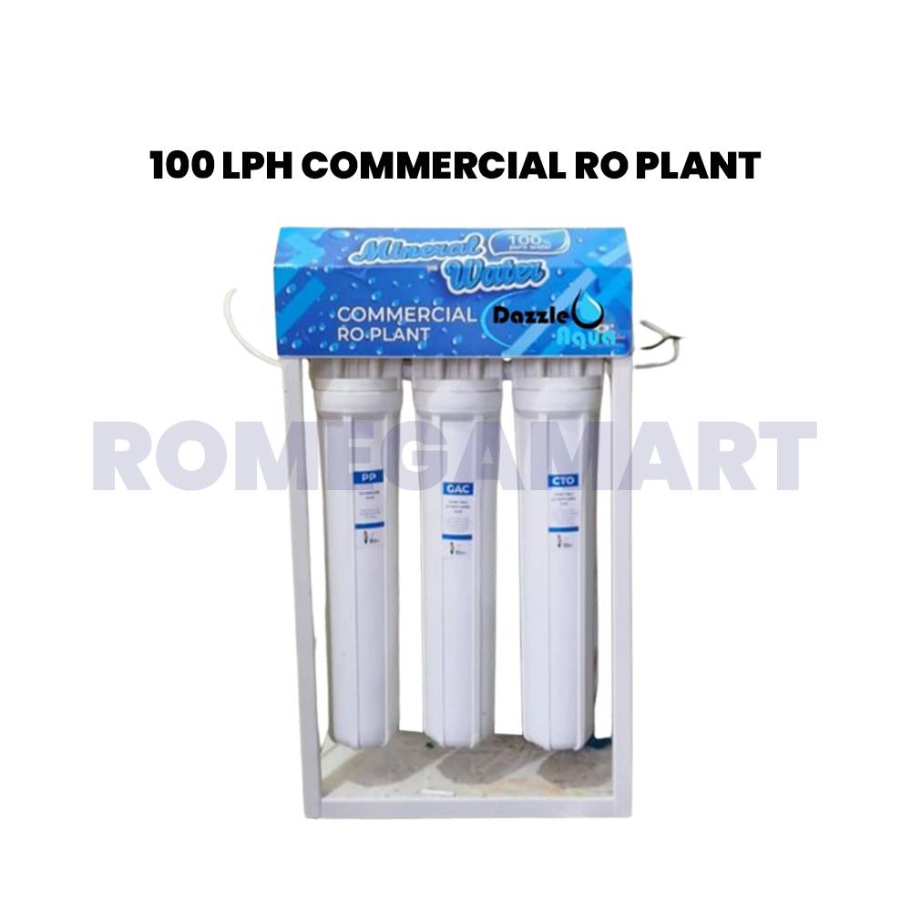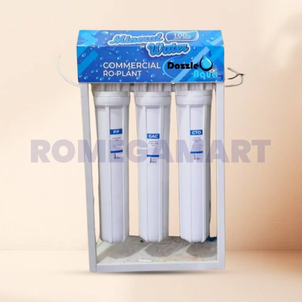 The Dazzle Aqua 100 LPH Commercial RO Plant is designed for high-efficiency water purification in commercial settings. Featuring a white-colored body, it ensures durable and reliable performance. Ideal for businesses requiring up to 100 liters per hour of purified water, this system offers consistent and effective filtration for commercial use.