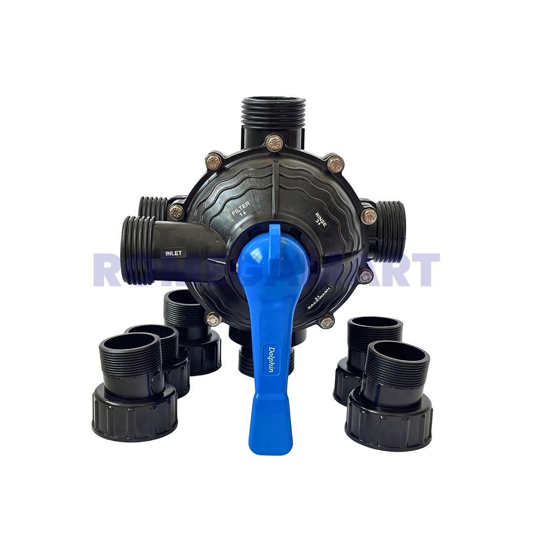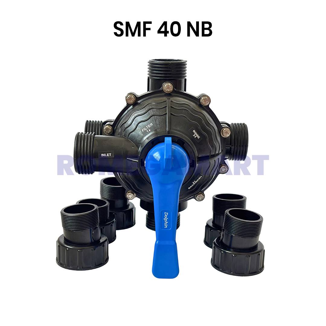 The Dolphin 40 NB SMF Black Color Multiport Valve For Water Softener is a heavy-duty control valve designed for large residential, commercial, and industrial water softener systems. Built with durability and precision in mind, this multiport valve enables smooth operation and reliable control of key softening cycles — such as service, backwash, rinse, brine, and fast rinse — ensuring optimal water softening performance.