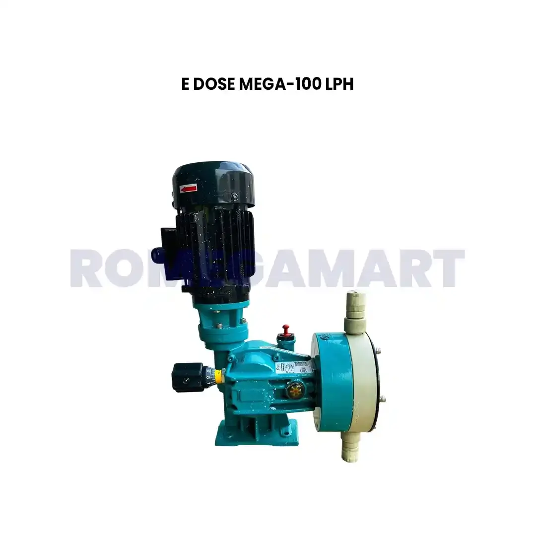The E Dose Mega 100 LPH Dosing Pump, Blue Color Polypropylene Material for Industrial Use, is engineered for precise chemical dosing in industrial and RO water treatment applications. Built with a strong polypropylene (PP) body, it offers superior corrosion resistance, durability, and consistent performance under high pressure. Ideal for large-scale RO plants, wastewater treatment, and chemical processing systems, this dosing pump ensures accurate flow control, leak-proof operation, and long service life with minimal maintenance.
