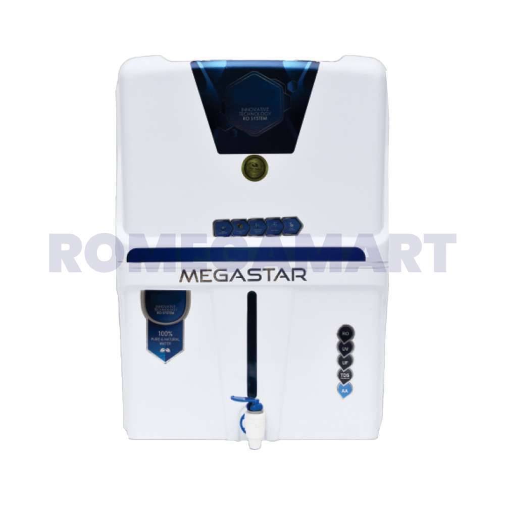 The Earth RO System Megastar Alkaline Water Purifier is a 15-liter capacity system designed for home and office use, featuring RO (Reverse Osmosis), UV (Ultraviolet), UF (Ultrafiltration), and TDS control technologies. This white-colored water purifier offers comprehensive filtration to remove impurities, contaminants, bacteria, viruses, and control TDS (Total Dissolved Solids) in water. The alkaline feature helps enhance water pH, providing healthier and better-tasting drinking water. The 15-liter storage tank ensures a continuous supply of purified water. Easy to install and maintain, the Earth RO System Megastar Alkaline Water Purifier is a reliable choice for ensuring clean, safe, and alkaline water for daily consumption.