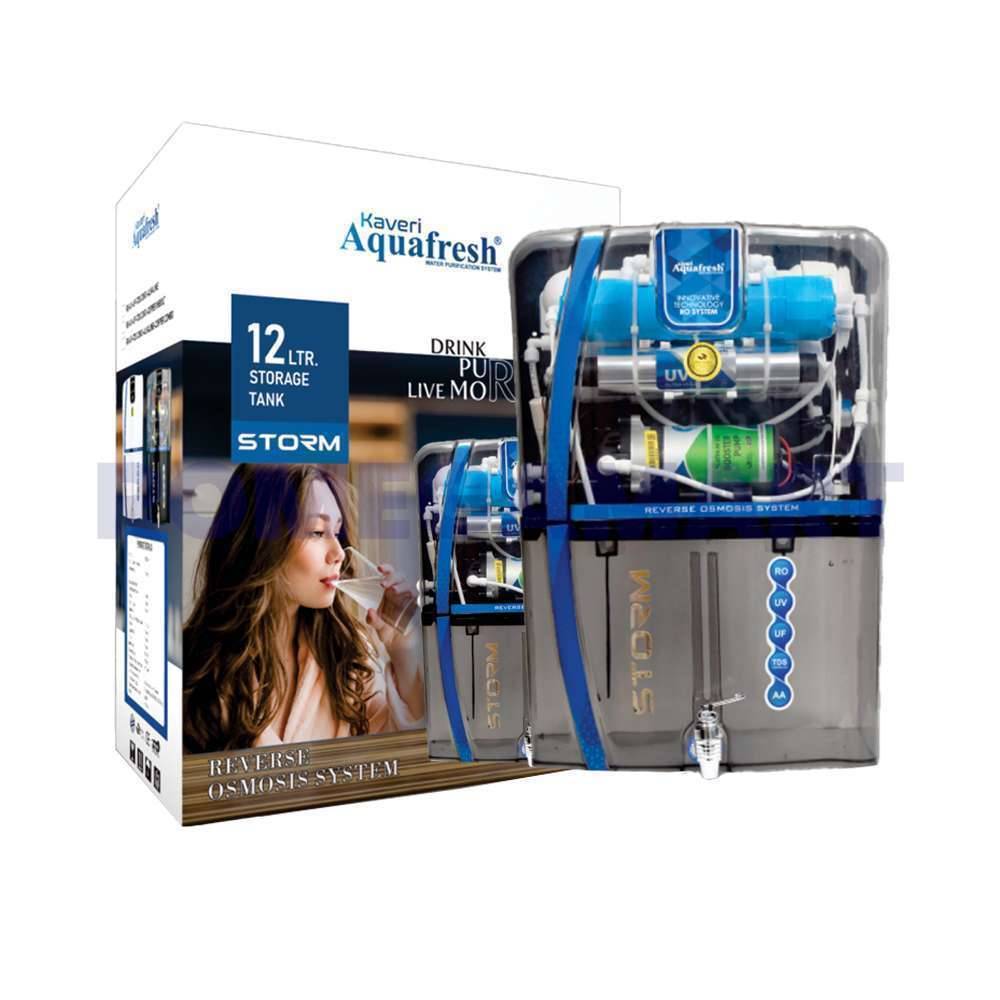 The Earth RO System Storm is a domestic water purifier with a 12-liter storage capacity, featuring RO (Reverse Osmosis), UV (Ultraviolet), UF (Ultrafiltration), TDS (Total Dissolved Solids) control, and alkaline technologies. This grey transparent water purifier effectively removes impurities, contaminants, and harmful substances from water while adding beneficial minerals to enhance taste and health benefits. The transparent design allows you to monitor the filtration process visually. Ideal for home use, the Earth RO System Storm ensures a continuous supply of clean and safe drinking water. Easy to install and maintain, this water purifier is a reliable choice for improving water quality and overall health.