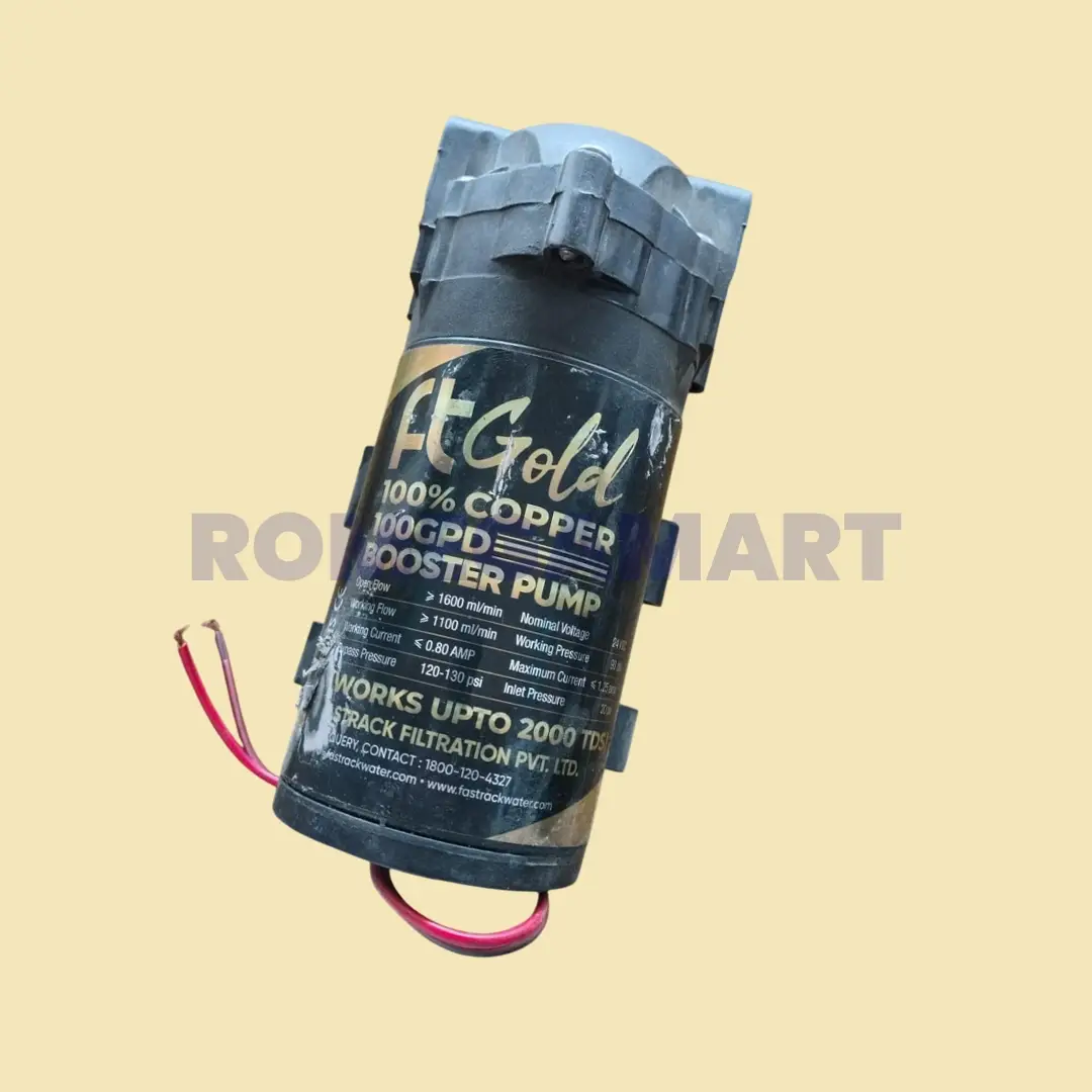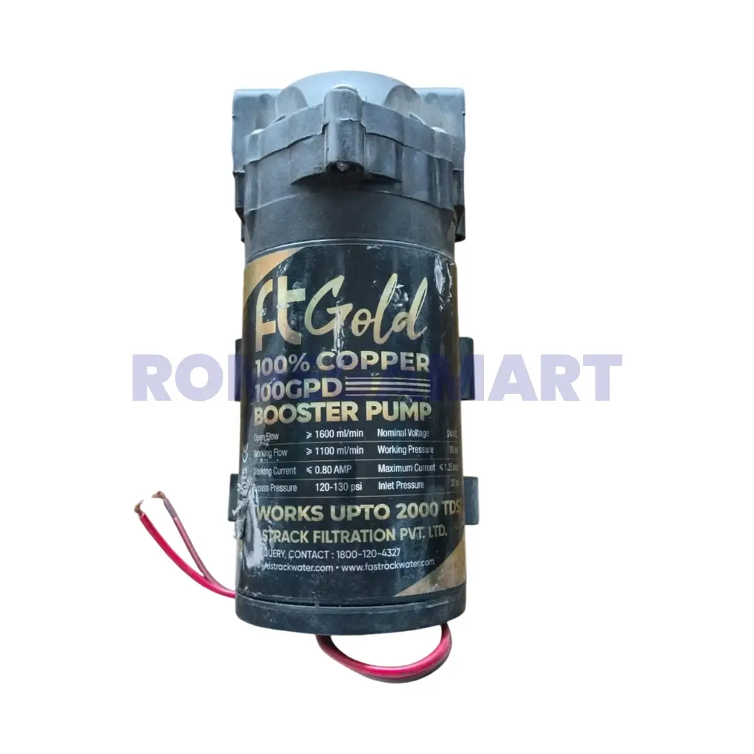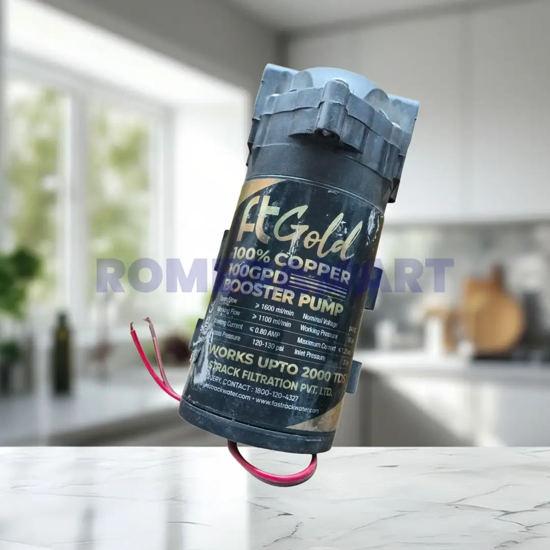 The Fastrack FT Gold 100 GPD Pump is designed to deliver high-pressure performance required for efficient operation of domestic RO water purifier systems. With a 100 GPD capacity, this pump is suitable for systems that require higher water output and consistent pressure for optimal filtration.