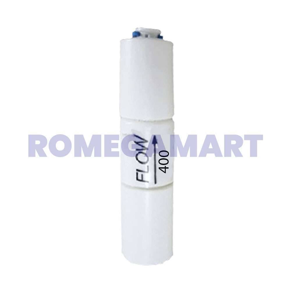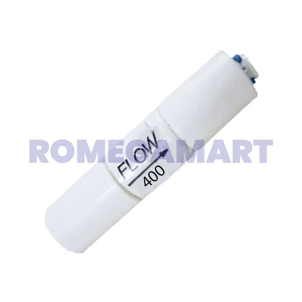 The Flow Restrictor 400 White Color is an essential component for domestic water systems, designed to regulate and control the flow of water, ensuring optimal performance and efficiency. This pack includes 5 pieces, each crafted from durable, high-quality materials to withstand regular use and maintain consistent water flow. Ideal for residential RO systems, the restrictor helps prevent overloading and ensures that your water purifier operates at its best. Its white color blends seamlessly with various water system setups, making it a versatile choice for maintaining the quality and longevity of your domestic water system.