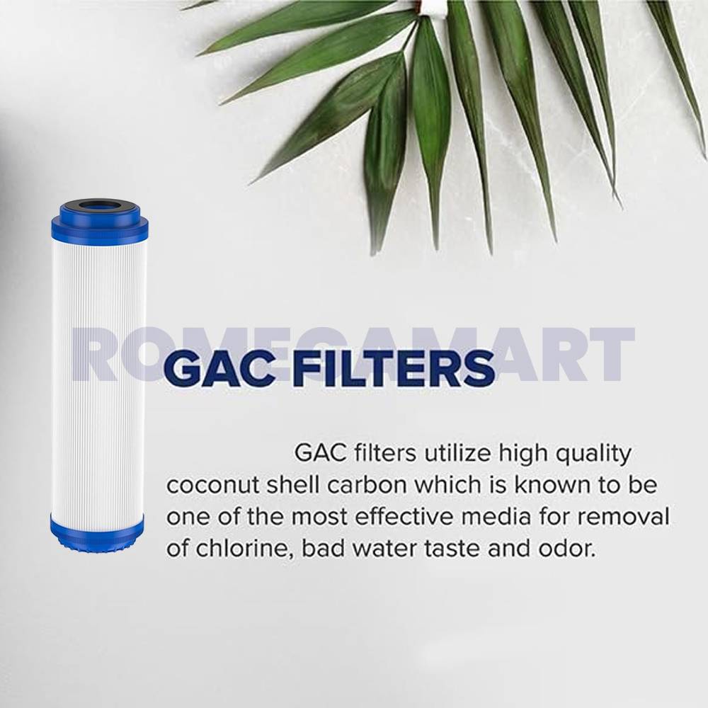 The GAC Reverse Osmosis Filter Cartridge in white is a key component for domestic reverse osmosis (RO) systems, designed to significantly improve water quality. Made with high-grade granular activated carbon (GAC), it effectively reduces chlorine, bad odors, and organic impurities, ensuring clean, fresh-tasting water. The universal design fits most standard RO systems, offering a versatile filtration solution for households. Easy to install and low-maintenance, this cartridge extends the lifespan of other RO components by pre-filtering contaminants, making it an essential choice for safe and healthy drinking water.