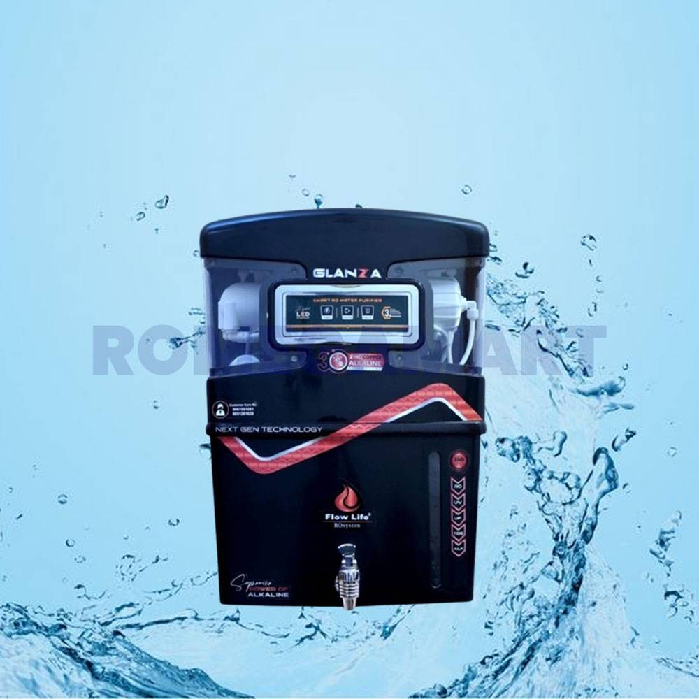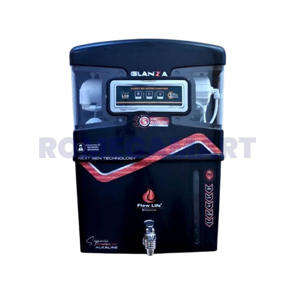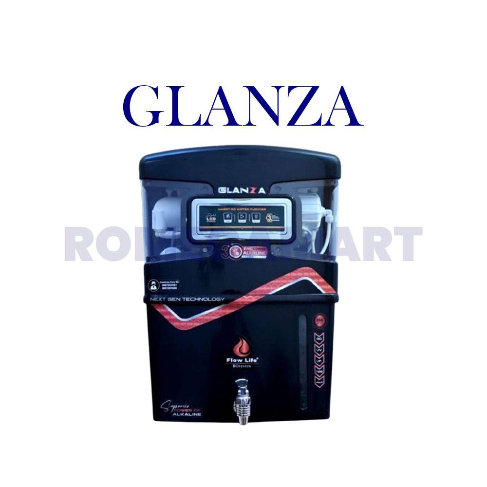 The Glanza Black Transparent Reverse Osmosis (RO) system features a sleek and modern design, combining elegance and functionality. With a 12-liter storage capacity, it's perfect for domestic use, ensuring a constant supply of purified water. The body is made of high-quality ABS plastic, known for its durability, impact resistance, and lightweight properties. This system uses advanced RO technology to remove contaminants, ensuring safe, clean drinking water. Its striking black and gold color combination enhances the aesthetic appeal of your kitchen while delivering reliable performance in water purification for households.