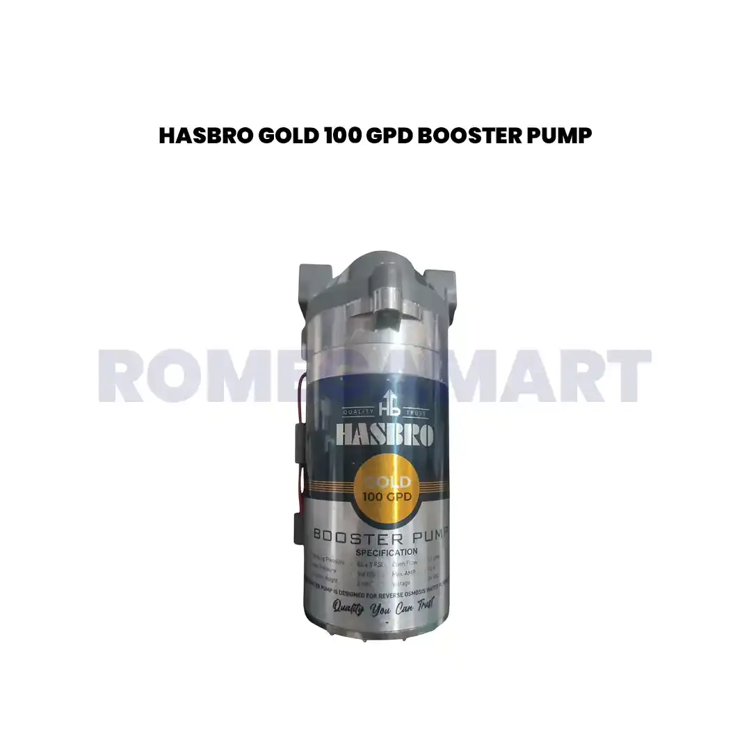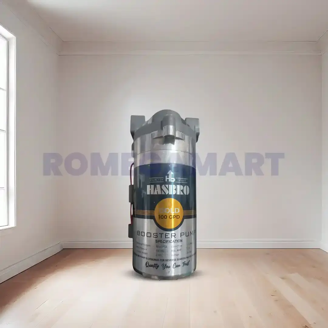 The Hasbro Gold 100 GPD Metal Material Booster Pump is a premium-quality pump designed for domestic RO water purifiers. Engineered with a sturdy metal body, it ensures consistent water pressure, efficient filtration, and long service life. This 100 GPD booster pump operates quietly while delivering powerful suction and steady performance even under low water supply. The Hasbro Gold Booster Pump is corrosion-resistant, energy-efficient, and ideal for enhancing your RO system’s water flow and purification efficiency.