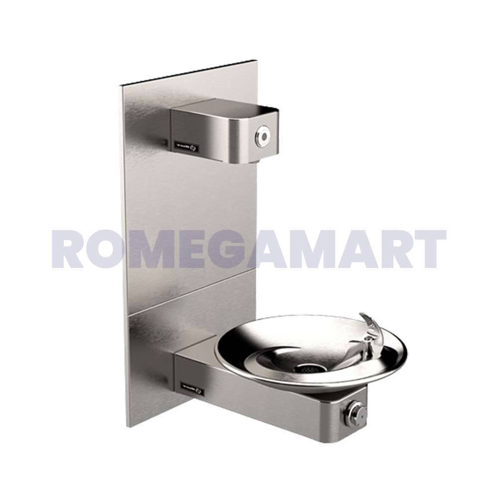 The Haws 1001MS-1920 stainless-steel ADA vandal-resistant drinking fountain and bottle filler uses patented stainless steel push-button valve assemblies allowing for front access stream adjustment as well as cartridge and strainer access. Wall mounted MS (mounting system) allows for front access of plumbing. This swirl bowl designed fountain offers the 'only' all stainless-steel valve body that is machined out of solid bar stock, is fully serviceable through the front of the push button assembly offering access to the water control cartridge and integral water supply strainer, and has front access to the water stream height adjustment for easy maintenance without having to remove the valve.