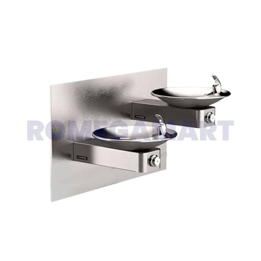 The Haws 1011 barrier-free Hi-Lo stainless-steel vandal-resistant drinking fountain uses a patented stainless steel push-button valve assembly allowing for front access stream adjustment as well as cartridge and strainer access. This wall mounted swirl bowl designed fountain offers the 'only' all stainless-steel valve body that is machined out of solid bar stock, is fully serviceable through the front of the push button assembly offering access to the water control cartridge and integral water supply strainer, and has front access to the water stream height adjustment for easy maintenance without having to remove the valve.