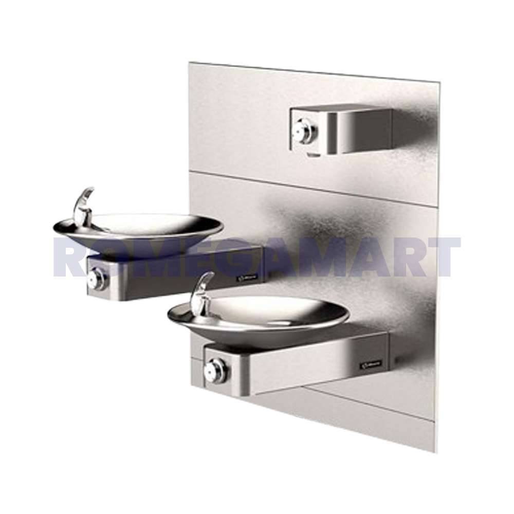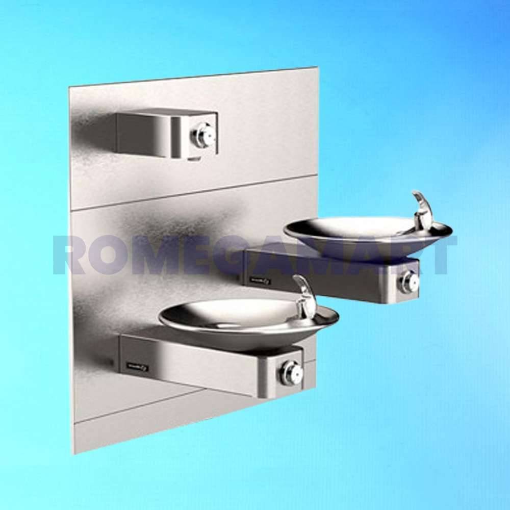 The Haws 1011-1920 barrier-free Hi-Lo stainless-steel vandal-resistant water fountain bottle filler uses patented stainless steel, push-button activated, valve assemblies allowing for front access stream adjustment as well as cartridge and strainer access. This wall mounted fountain offers the 'only' all stainless-steel valve body that is machined out of solid bar stock, is fully serviceable through the front of the push button assembly offering access to the water control cartridge and integral water supply strainer, and has front access to the water stream height adjustment for easy maintenance without having to remove the valve.