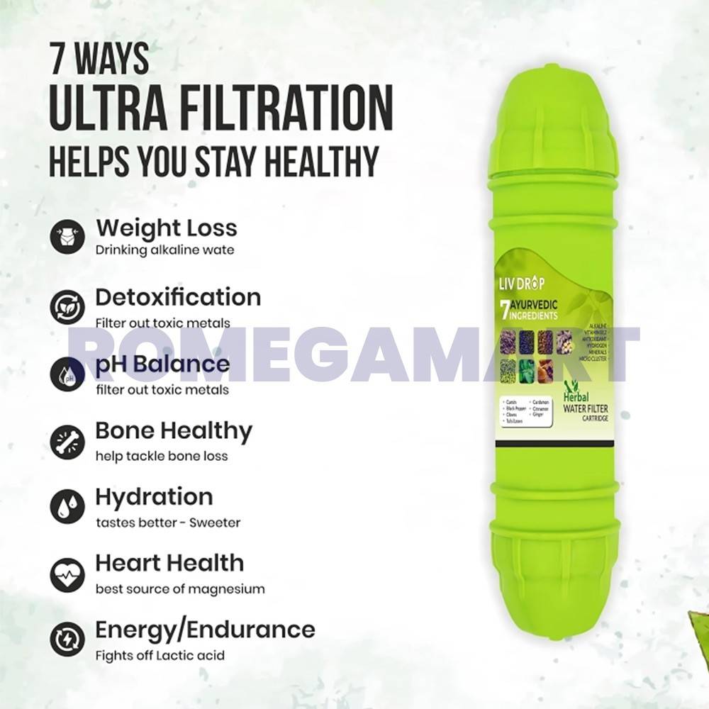 Inject your water with nature's integrity utilizing the Livdrop Home grown Channel Cartridge. This novel channel contains a mix of seven spices, including cumin, cardamom, dark pepper, ginger, cloves, tulsi, and cinnamon. Appreciate purged as well as spice upgraded water that tempts your taste buds and possibly offers medical advantage. No additional additives, plavors, sugars or tones. Channel has integrity of 7 Ayurvedic ingerdients - Cumin, Dark Pepper, Cloves, Tulsi Leaves, Cardamon, Cinnamon, Ginger.