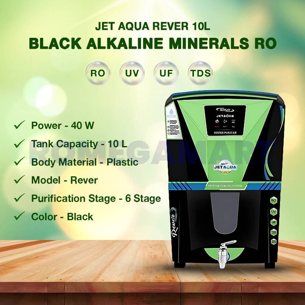 The Jet Aqua Rever Black Alkaline 10 Liter Water Purifier is designed to provide safe, pure, and mineral-rich drinking water for your family. Built with a sleek Black finish and durable ABS plastic body, this purifier enhances both your kitchen aesthetics and water quality.