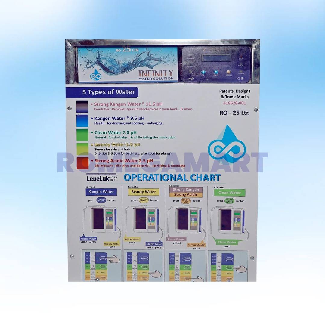 Upgrade your water purification system with the Kangen 25 Liter Per Hour RO Water Purifier. Designed for domestic use, it delivers a high flow rate of 25 liters per hour, ensuring clean and safe drinking water for your household. The integrated 18-liter water tank provides continuous water supply, even during short power interruptions.