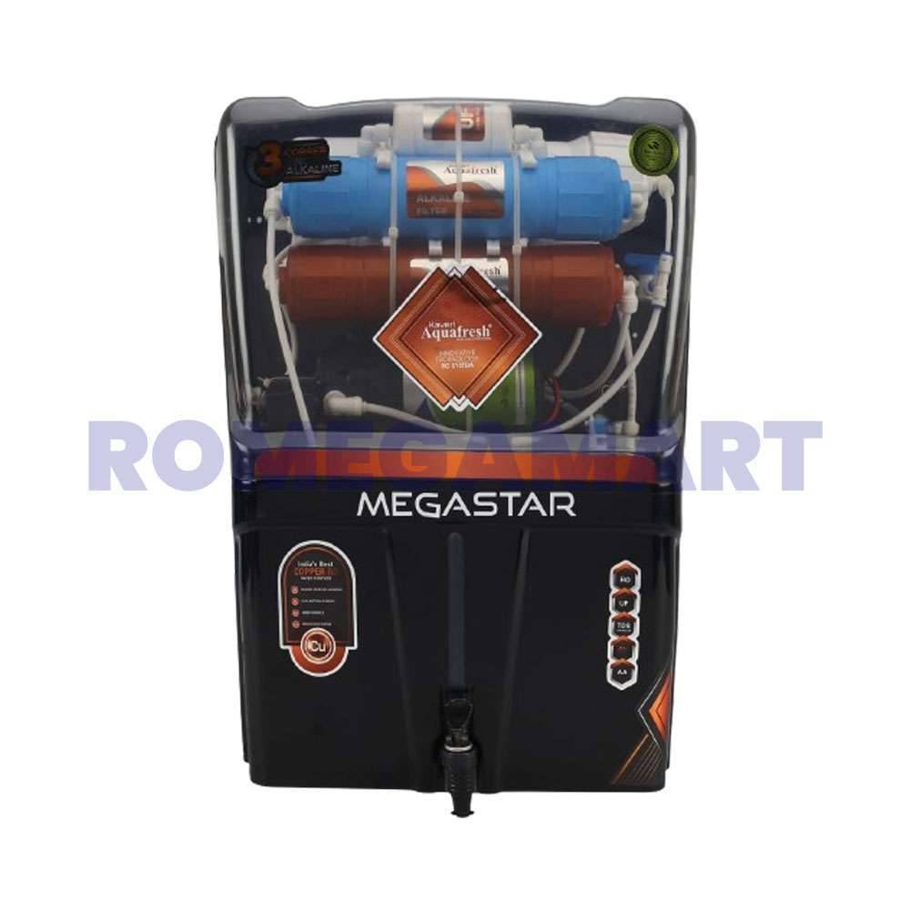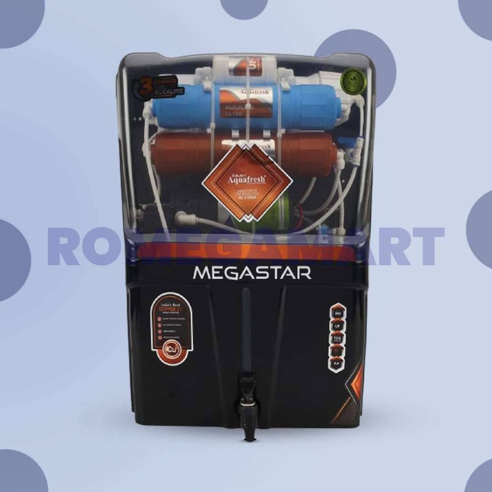 The Kaveri Megastar 12-liter storage Cabinet For Water Purifier in sleek black with transparent accents is designed for efficient domestic water purification. This RO system integrates advanced filtration technologies, ensuring clean and safe drinking water. Its spacious storage capacity caters well to household needs, providing ample water for daily consumption. The transparent design adds a modern touch, allowing users to monitor water levels easily. Crafted from durable materials, it guarantees reliability and longevity. Ideal for homes seeking both functionality and style, the Kaveri Megastar offers peace of mind with its effective purification capabilities, ensuring every drop is free from impurities and contaminants.