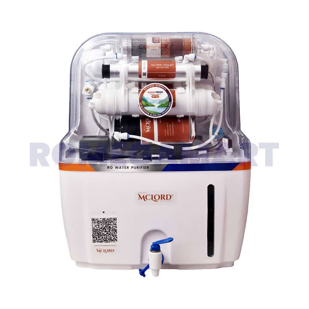 The Mclord Aqua Fresh CU+ALK White Transparent Water Purifier offers an advanced RO+UV+UF+TDS purification system, ensuring safe and pure drinking water for your home. With a 12-liter storage capacity, it features a sleek and modern white transparent design that complements any kitchen decor. The purifier incorporates copper and alkaline technology, enhancing water quality by adding essential minerals and maintaining the pH balance. Its user-friendly interface, easy maintenance, and reliable filtration make it an excellent choice for households seeking efficient water purification. Trust Mclord Aqua Fresh for clean, healthy water every day.