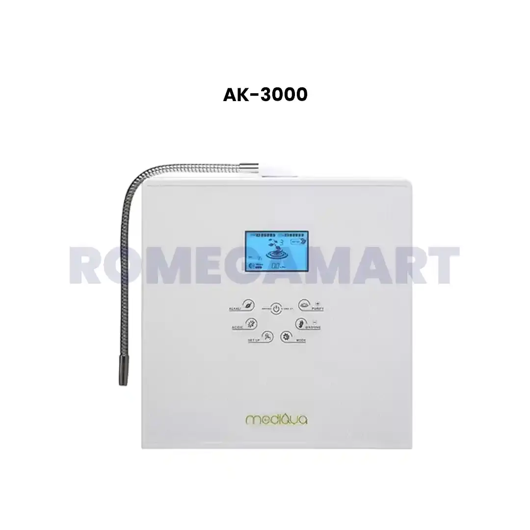 Experience next-level hydration with the Mediqua AK-3000 White Color Ionizer with LCD Screen, designed for those who value health, technology, and purity. This premium water ionizer delivers alkaline, antioxidant-rich water that supports better digestion, hydration, and overall wellness. Its LCD display offers easy operation and real-time monitoring, while the sleek white finish adds elegance to your modern kitchen. Perfect for domestic use, the Mediqua AK-3000 combines performance, style, and convenience—ensuring safe, great-tasting, and pH-balanced water for your family every day.