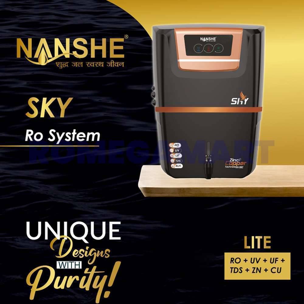 The NANSHE Dark Sky RO+UV+UF+ZN+CU+TDS Water Purifier, with a 10-liter storage capacity, is designed for domestic use. Featuring a black color design, this advanced purifier combines RO, UV, UF, ZN, CU, and TDS technologies to effectively remove impurities, bacteria, and viruses. It also adds essential minerals like zinc and copper, ensuring clean, safe, and great-tasting water for your household. With its large storage capacity and sleek design, it offers reliable performance and convenience for daily use.