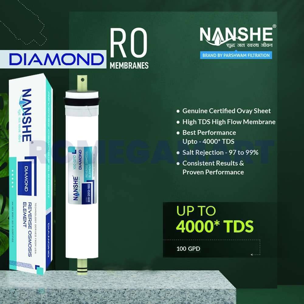 The NANSHE Diamond 100 GPD Osmosis Membrane is designed for domestic Reverse Osmosis (RO) systems, specifically to handle high Total Dissolved Solids (TDS) levels in water. With a capacity of 100 gallons per day (GPD), this membrane ensures efficient filtration, delivering clean and safe drinking water for household use. Its advanced technology effectively removes impurities, contaminants, and dissolved solids, ensuring superior water quality. Ideal for homes with high TDS water, the NANSHE Diamond 100 GPD Membrane provides reliable performance and peace of mind for your RO system.