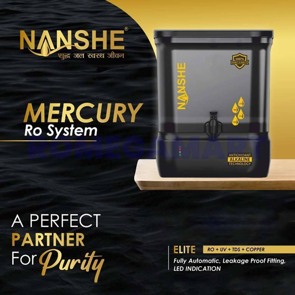 The NANSHE Mercury Dark Elite RO+CU+TDS Water Purifier combines advanced RO, copper (CU) infusion, and TDS technologies, making it perfect for both home and office use. It effectively removes impurities while enriching the water with beneficial copper for enhanced health benefits. Its sleek black design adds a modern touch, while its reliable performance ensures convenient access to pure and healthy drinking water.