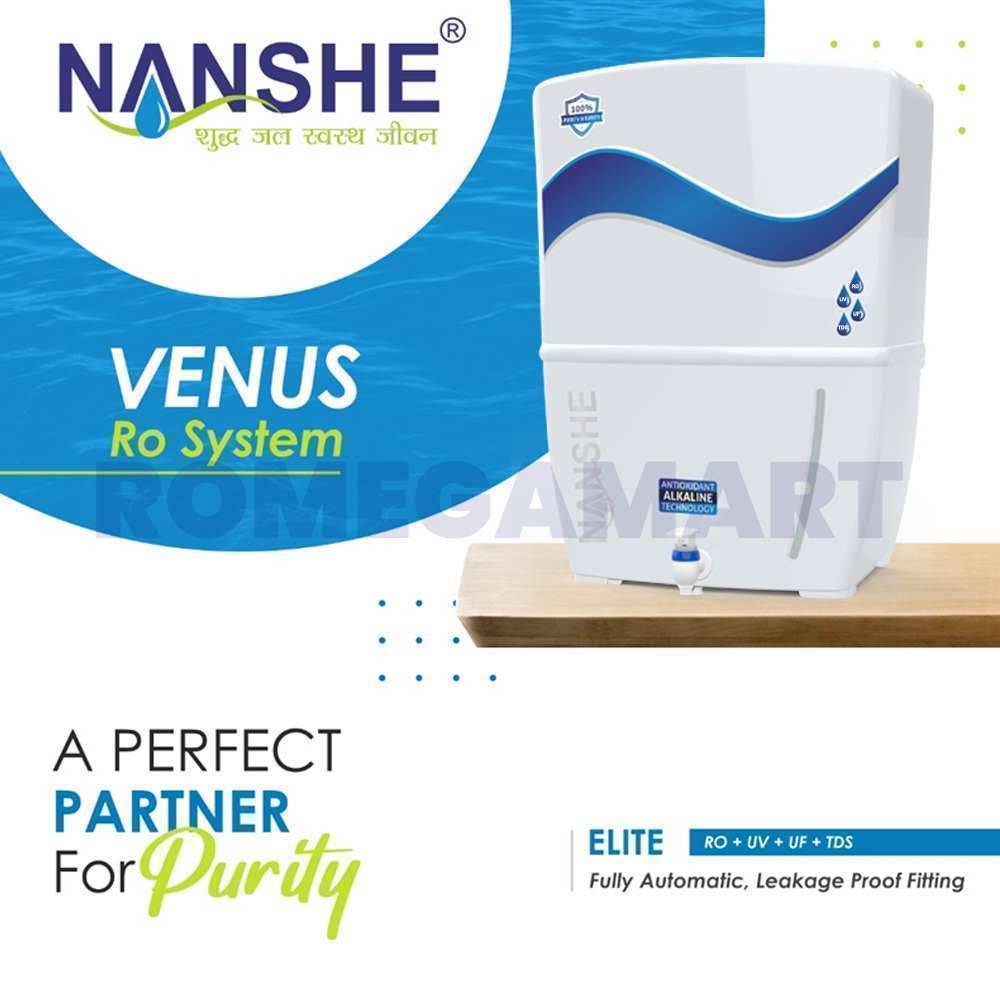 The NANSHE White Venus Elite RO+UV+TDS Water Purifier combines advanced RO, UV, and TDS filtration technologies, making it perfect for both home and office use. This purifier effectively eliminates impurities, bacteria, and contaminants while preserving essential minerals for clean and great-tasting water. Its elegant white design enhances any space, offering both style and reliable performance for everyday hydration.