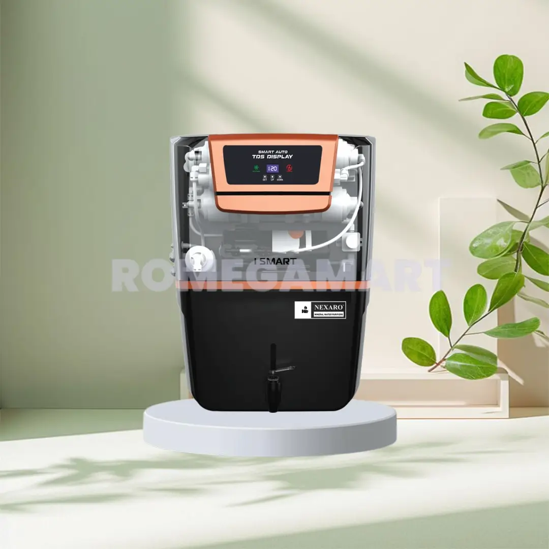 Introducing the Nexaro I Smart 12 Liter Storage Black Transparent Color RO Water Purifier with Smart LED Display — a premium purification system designed for modern Indian homes. Built with advanced RO technology, it effectively removes TDS, chemicals, bacteria, viruses, and dissolved impurities to deliver safe, great-tasting drinking water.
