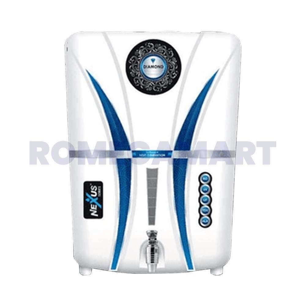 The Nexus Aqua Diamond W is a 12-liter storage water purifier designed for domestic use, featuring advanced RO, UV, and copper filtration technologies. This innovative system effectively removes impurities and harmful contaminants, ensuring safe and healthy drinking water. The incorporation of copper enhances the purification process, adding essential minerals for improved health benefits. With a sleek white design, it seamlessly blends into any kitchen decor. Equipped with TDS control, it maintains optimal water quality by adjusting the total dissolved solids to suit user preferences. This purifier combines functionality and style, making it a perfect choice for modern households.