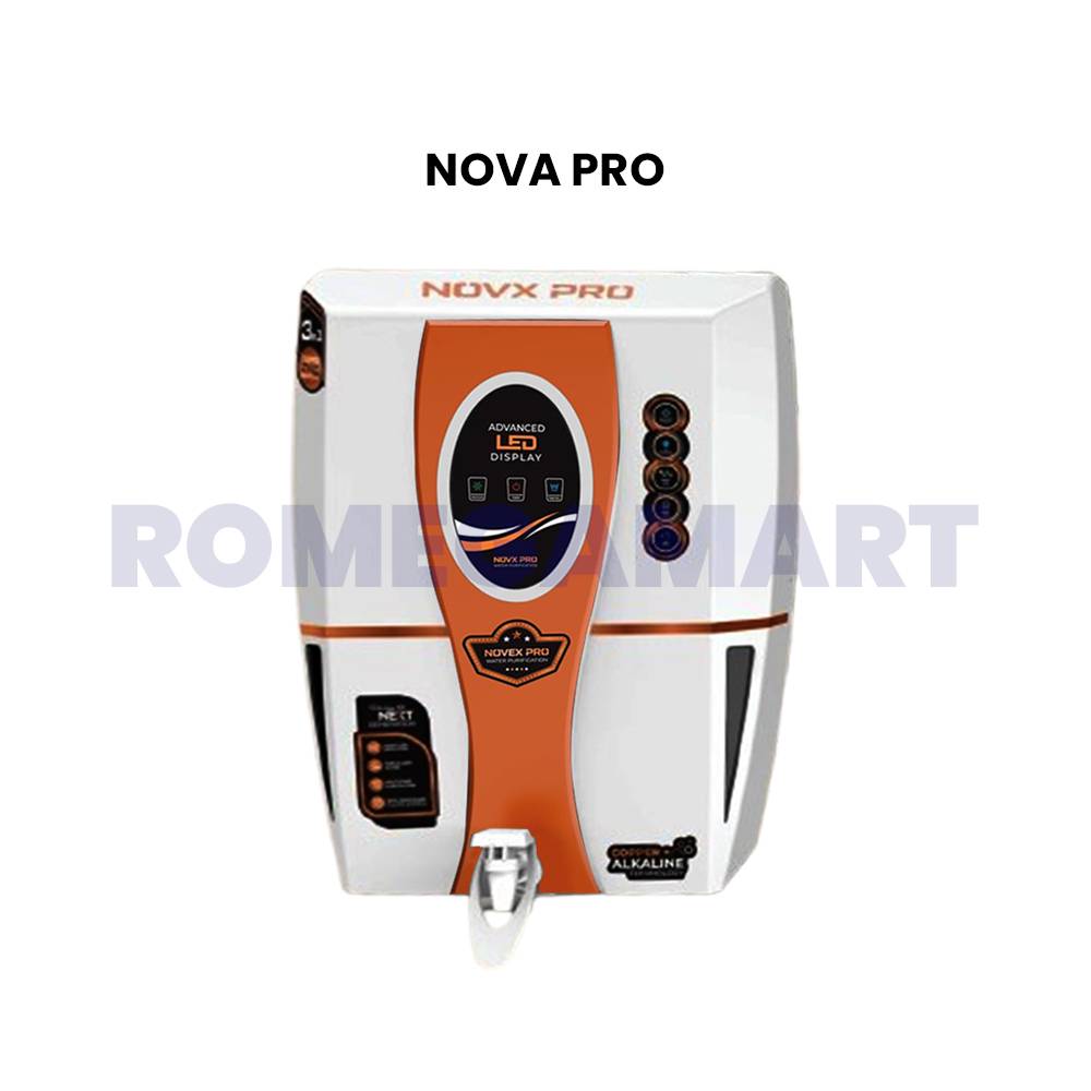 The Nova Pro White Copper Water Purifier is a stylish and highly effective water filtration system. Using Zinc, Copper, and Alkaline technology, it eliminates contaminants while preserving essential minerals. The 12-liter storage capacity makes it suitable for households and workplaces. The elegant white and copper design enhances your kitchens aesthetic appeal. With multi-stage filtration, it guarantees pure, great-tasting, and safe drinking water.