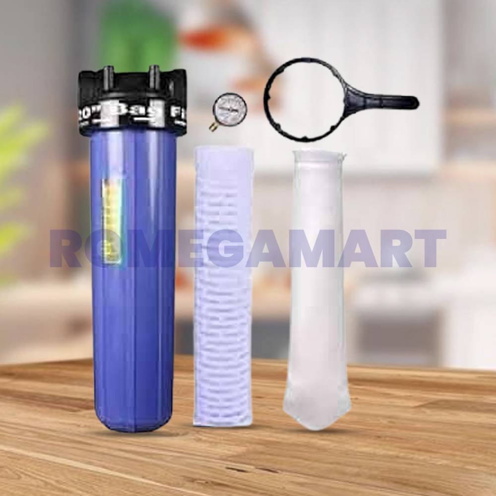 The OCEAN STAR 20x4 Diameter Filter Housing Complete Set includes a filter housing, bag, key, and pressure gauge, designed with 1-inch in/out connections for easy installation and efficient water filtration. This comprehensive set is made with durable construction, ensuring long-term reliability and versatility for various filtration applications. Accommodating 20x4-inch filter cartridges, it provides a reliable solution to remove impurities from water, improving water quality. Upgrade your filtration system with this complete set for enhanced performance and convenience.