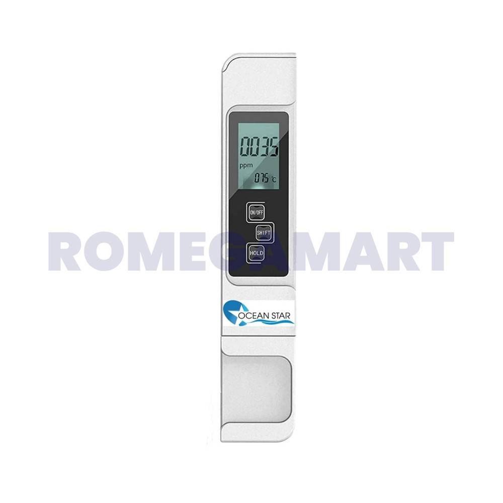 The Ocean Star TDS EC Meter Digital is a versatile tool for measuring water quality in RO purifiers. This advanced meter provides accurate readings of Total Dissolved Solids (TDS), Electrical Conductivity (EC), and temperature, ensuring the optimal performance of your water purification system. It is designed to monitor the quality of water by measuring key parameters, allowing users to maintain and adjust their RO systems accordingly. Compact and easy to use, the Ocean Star TDS EC Meter helps ensure purified water meets the highest standards of quality, making it an essential tool for both residential and commercial water treatment systems.