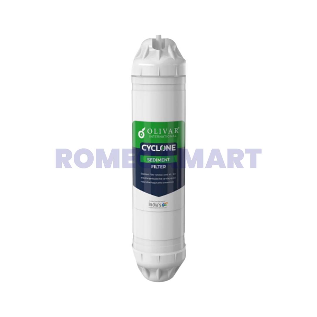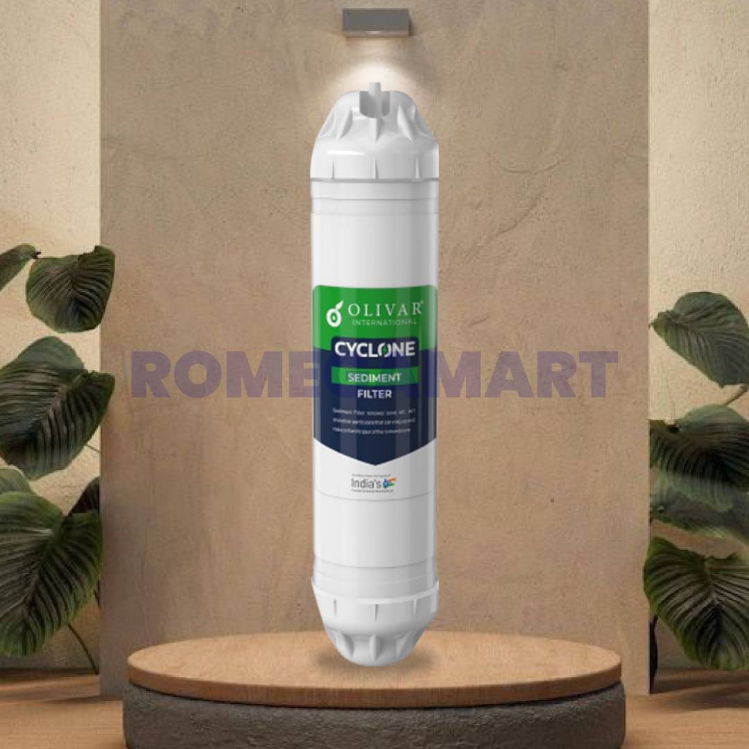 The Olivar Cyclone Inline Sediment Filter Cartridge is designed to provide effective pre-filtration for domestic RO systems. Made with a durable white outer body, this inline filter helps remove visible impurities such as dust, sand, rust particles, and suspended solids from the water. It plays a crucial role in protecting internal RO components by reducing sediment load before water reaches the membrane.