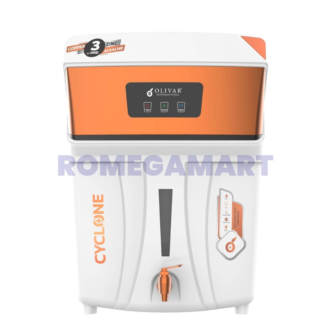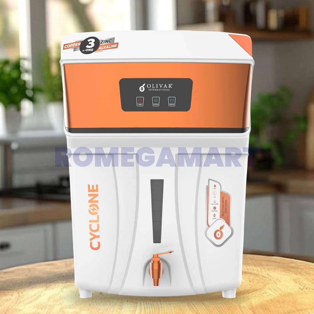 The Cyclone RO+UV+TDS+ALK+CU+ZN Water Purifier from RGV Enterprise delivers advanced multi-stage purification to ensure safe and healthy drinking water for your family. Powered with RO and UV technology, it effectively removes dissolved impurities, bacteria, viruses, and harmful contaminants. The inbuilt TDS controller maintains essential minerals, while the alkaline filter enhances pH balance for better hydration. Enriched with copper and zinc, this purifier supports immunity and overall wellness. The smart LED display keeps you informed about filter life, purification status, and tank levels. With a spacious 11 Liter storage capacity, it is ideal for homes and offices. Designed in an elegant white finish, this water purifier combines performance, durability, and style. Choose this advanced water filtration system for pure, mineral-rich, and great-tasting drinking water every day.