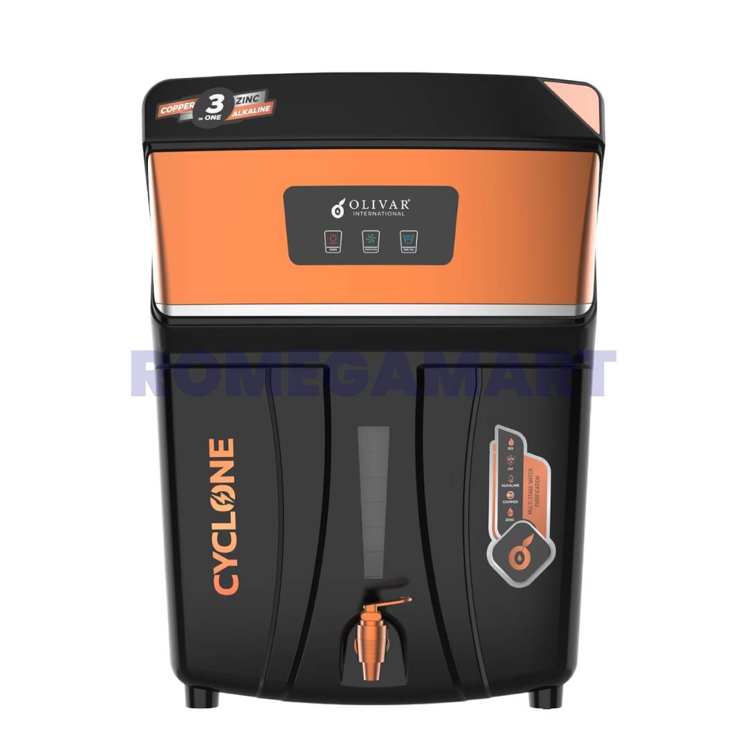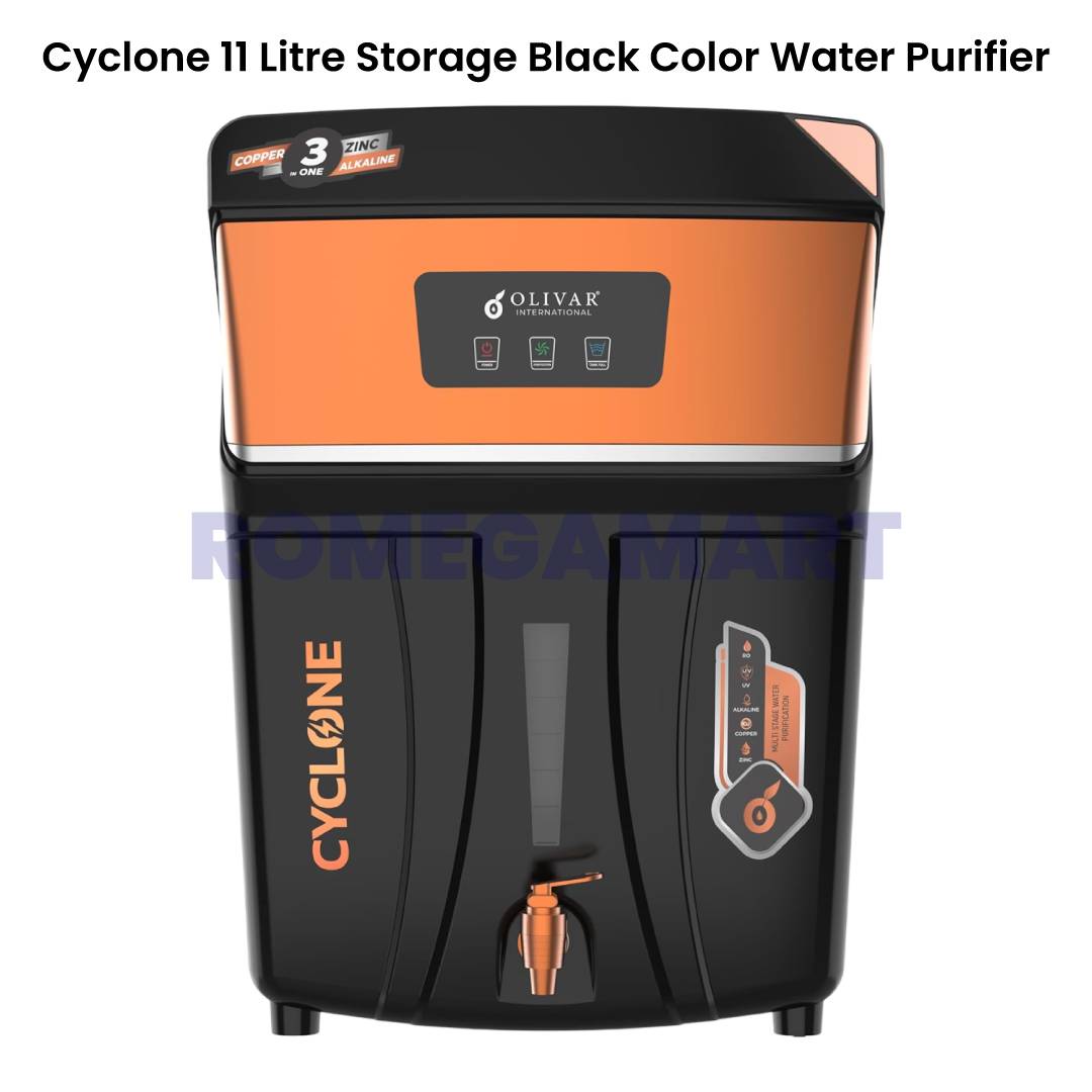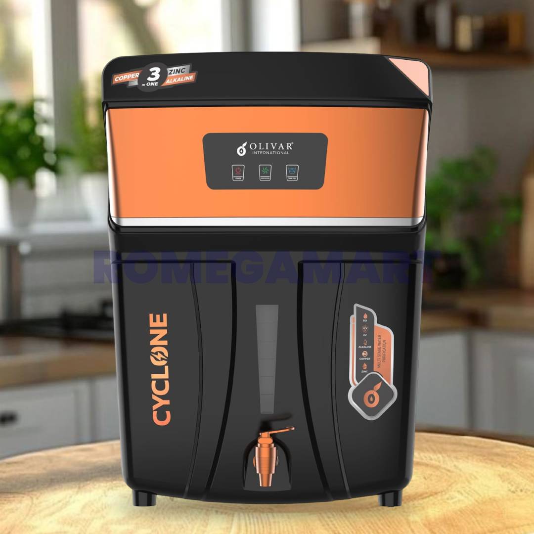 The Cyclone RO+UV+TDS+ALK+CU+ZN Water Purifier by RGV Enterprise is a powerful and advanced water purification system designed for modern homes. Equipped with RO, UV, TDS controller, Alkaline, Copper, and Zinc technology, it ensures safe, mineral-rich, and great-tasting drinking water. The smart LED display provides real-time filter status and purification updates, making maintenance simple and convenient.