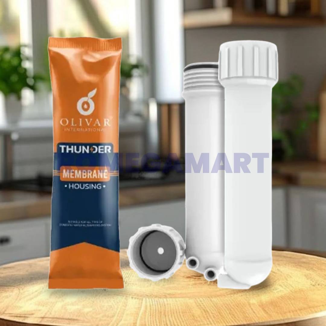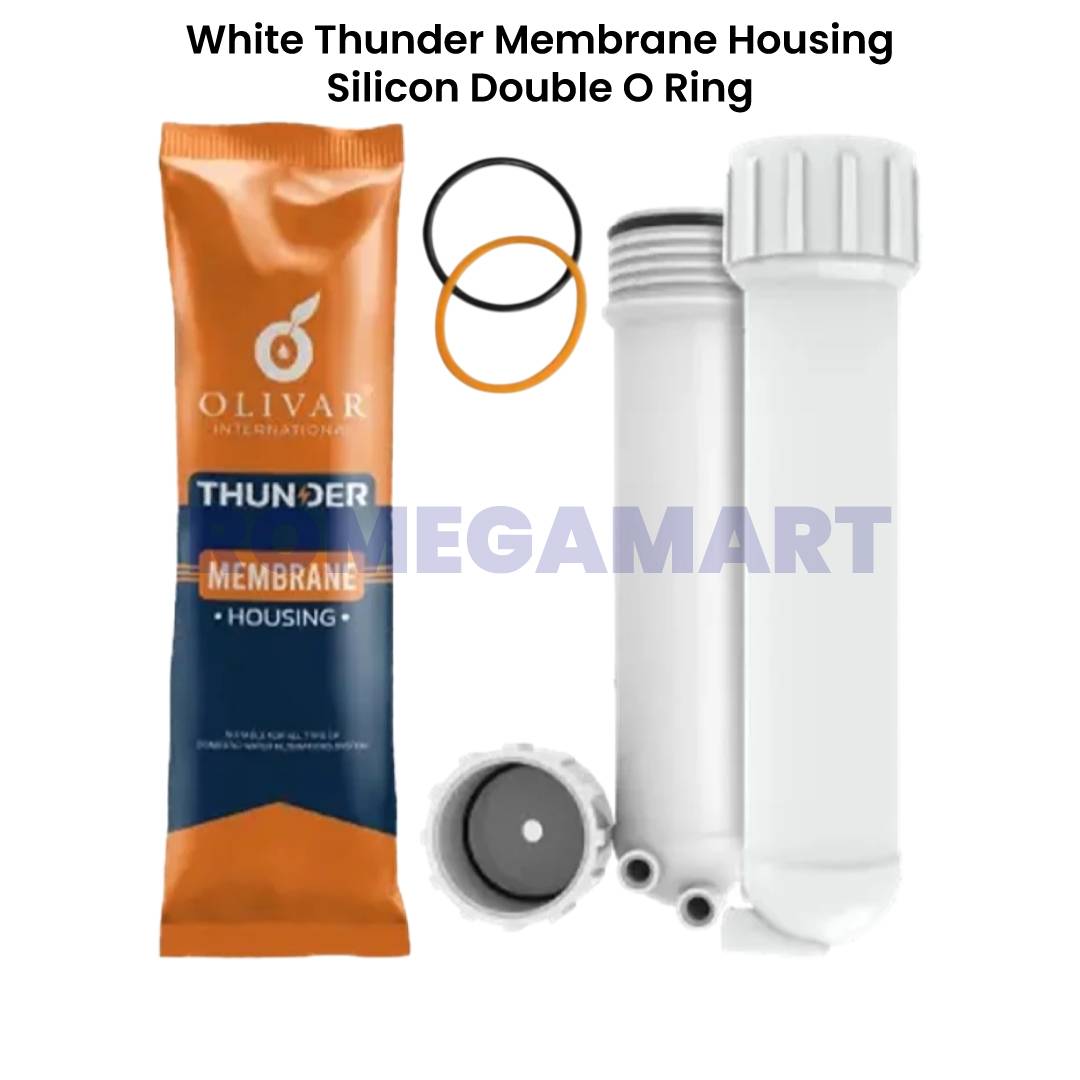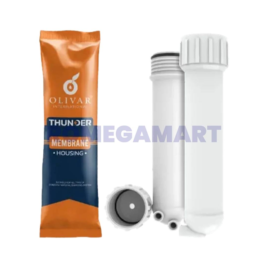 The Olivar Cyclone Thunder Membrane Housing is designed to securely hold RO membranes in domestic water purification systems. Built with a durable white body, this housing ensures reliable performance and long-term usage under regular household water pressure. The silicon double O-ring sealing system provides enhanced protection against leakage, ensuring a tight and secure fit during operation.