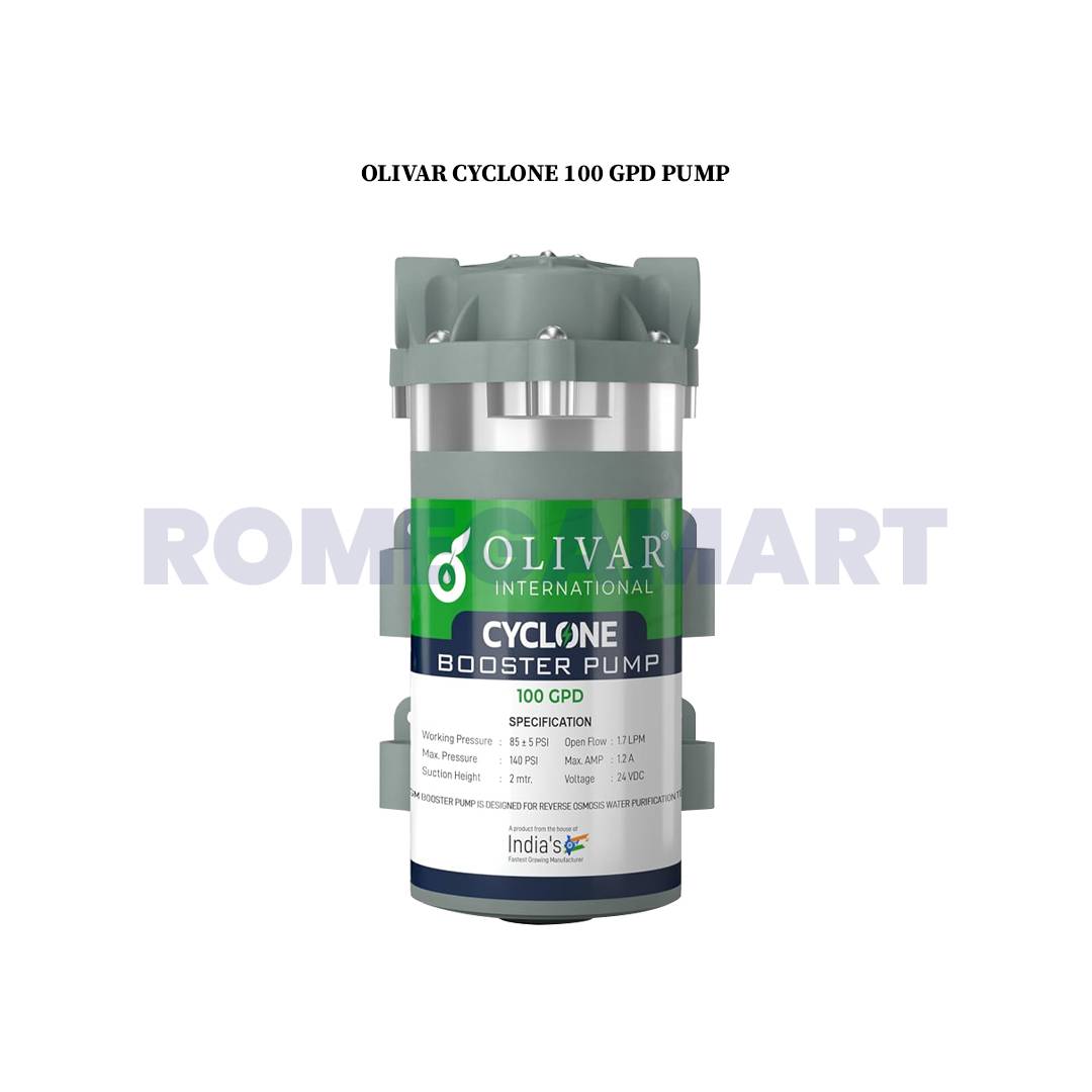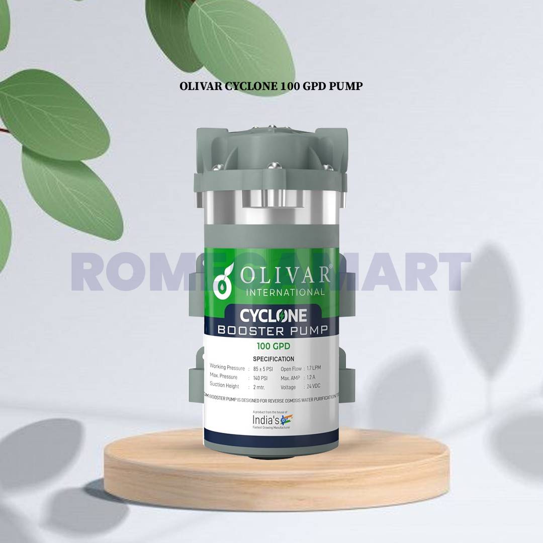 The Olivar International 100 GPD Cyclone Booster Pump is a high-performance solution designed to enhance the efficiency of RO water purifiers in domestic settings. Built for 100 GPD (gallons per day) capacity, this booster pump ensures consistent water pressure for optimal filtration, improving the performance and lifespan of your purifier.