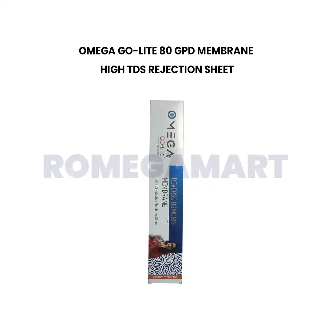 The Omega Go Lite 80 GPD RO Membrane is a high-performance purification membrane designed for domestic RO water purifiers. Built with a high TDS rejection sheet, it effectively removes dissolved salts, heavy metals, bacteria, and other impurities, ensuring pure and healthy drinking water. This multicolor RO membrane delivers up to 80 gallons per day of filtration capacity, making it ideal for households seeking superior purification with long-lasting durability. The Omega Go Lite RO Membrane is compatible with all major RO systems and ensures excellent performance even in areas with high TDS water.