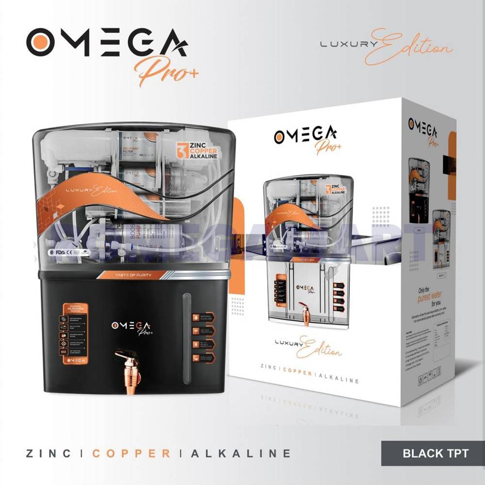 The Omega Pro+ Black TPT Water Purifier is designed for domestic use, featuring a generous 12-liter capacity to meet your family's hydration needs. Constructed from durable ABS plastic, it ensures longevity while maintaining a lightweight design. The advanced TPT filtration technology effectively removes impurities, ensuring that you enjoy clean and safe drinking water. Its user-friendly interface allows for easy operation, and the sleek Black finish adds a modern touch to your kitchen. With its efficient purification process, the Omega Pro+ Black is an ideal choice for households seeking a reliable and stylish water purification solution. Stay healthy and hydrated with Omega Pro+.