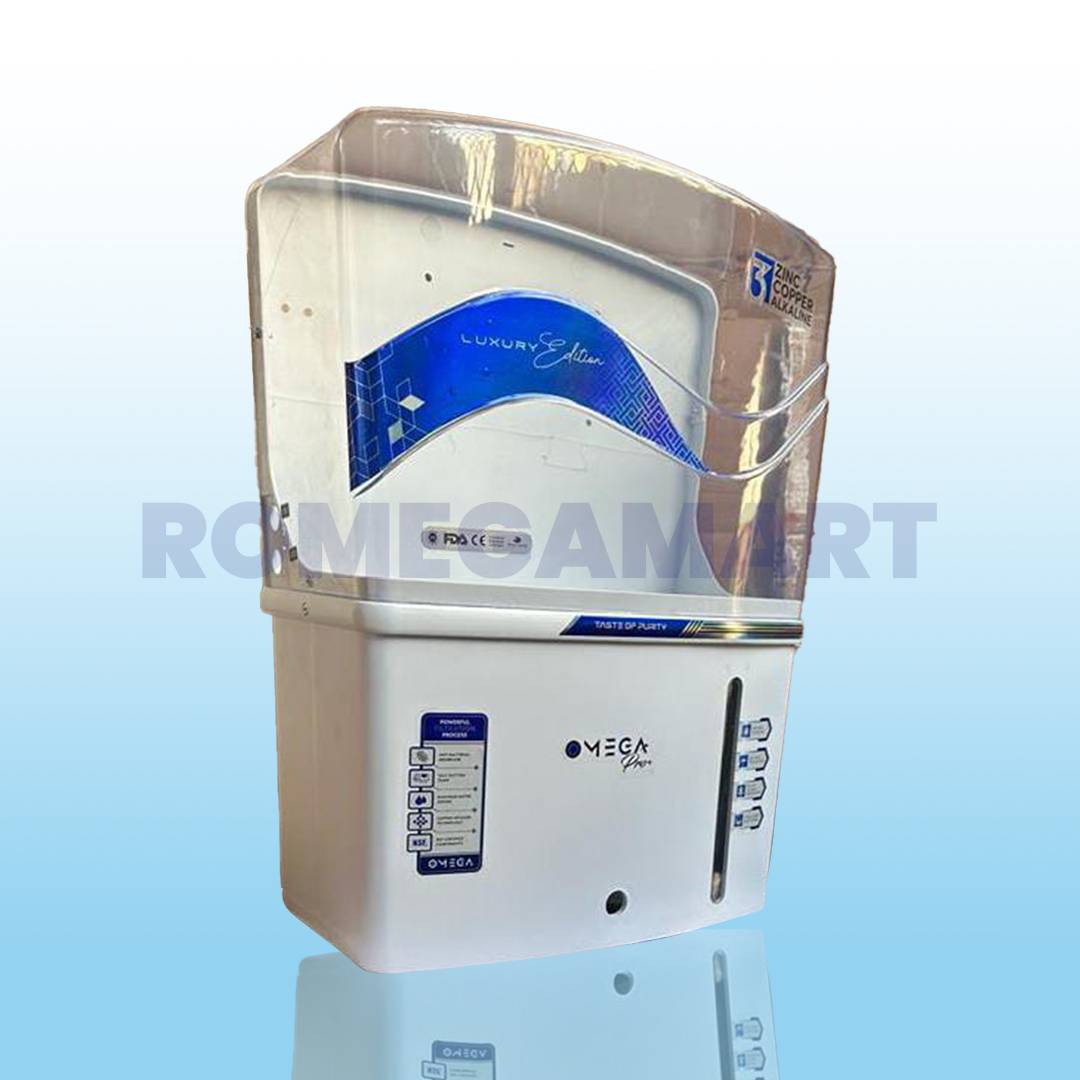 Add performance and style to your water purifier setup with the Omega Pro+ Blue TPT 12 Liter Storage RO Cabinet, crafted from high-quality ABS plastic. Designed for domestic use, this cabinet features a durable body with a transparent blue finish that lets you monitor water levels easily. With a generous 12-liter storage capacity, it ensures a continuous supply of purified water for your family. The ABS material offers excellent strength, long-lasting performance, and a sleek, modern look that fits any kitchen décor.