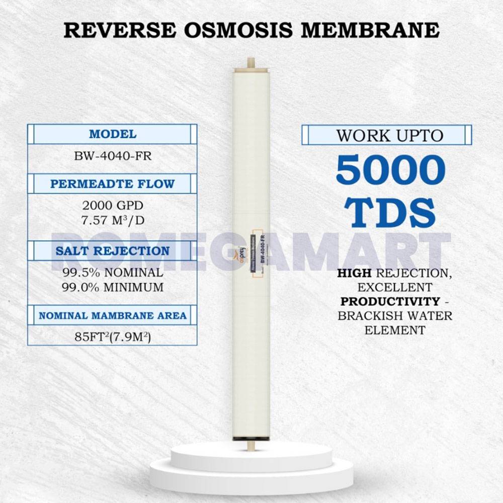 The Osprey BW-4040 Industrial FR Membrane is a high-efficiency reverse osmosis membrane designed for industrial and commercial water purification systems. Engineered to handle up to 5000 TDS, it effectively removes impurities, heavy metals, and contaminants, delivering high-purity water. Made with advanced filtration technology, this white-colored membrane ensures long-lasting durability, high flow rate, and excellent performance. Ideal for high-TDS water treatment, it guarantees consistent efficiency for industrial applications.