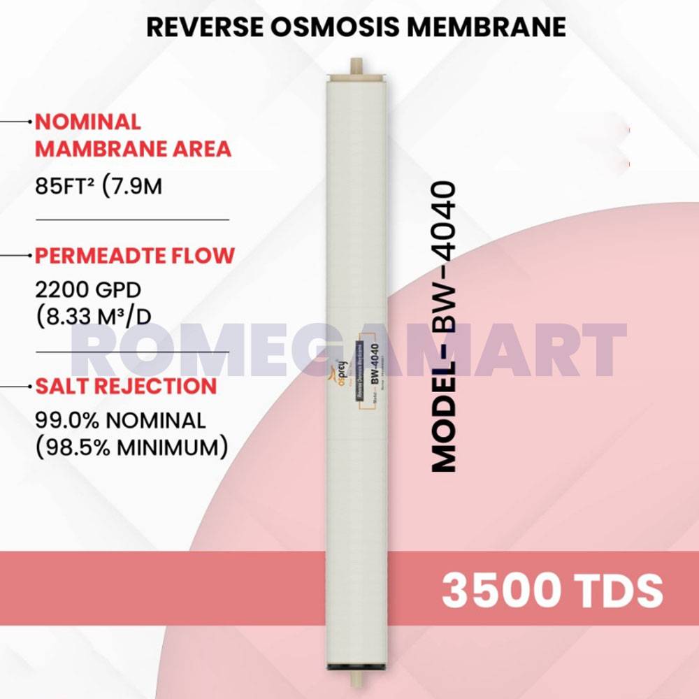 The Osprey BW-4040 Industrial Membrane is a high-performance RO membrane designed for industrial and commercial water purification. With the ability to handle up to 3500 TDS, it efficiently removes impurities, heavy metals, and contaminants, delivering clean and safe water. Made with advanced filtration technology, this white-colored membrane ensures high flow rate, durability, and long-lasting performance. Ideal for large-scale RO water purification systems, it guarantees consistent water quality and efficiency.