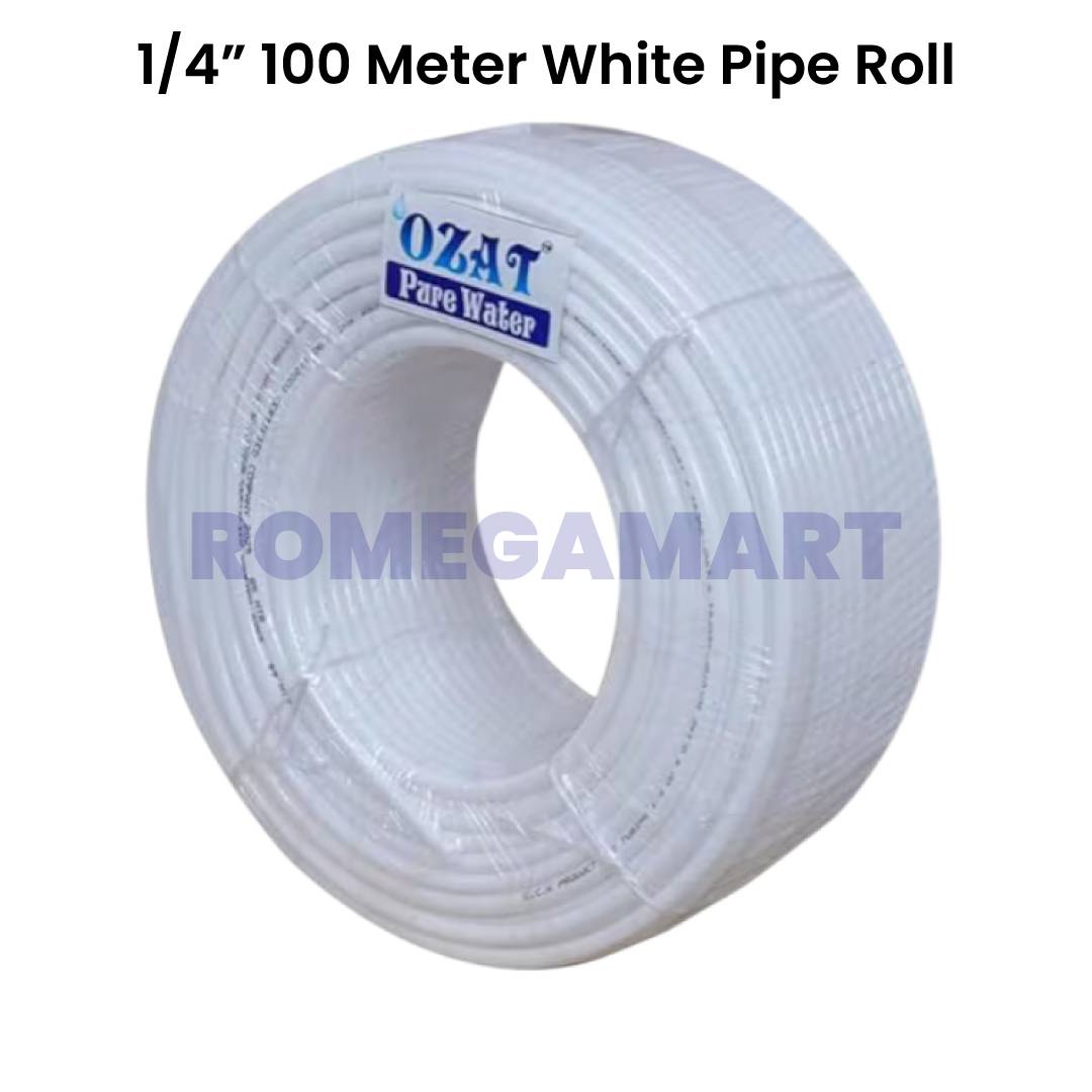 The Ozat Pure Water 1/4" White Pipe Roll 100 Meter Plastic Material for Domestic Use - Om RO Filter is designed to deliver safe and efficient water flow for household purification systems. Made from high-quality plastic material, this durable pipe ensures long-lasting performance and reliable connectivity in domestic RO installations. The standard 1/4-inch size makes it compatible with most RO water purifiers, water filters, and under-sink systems.