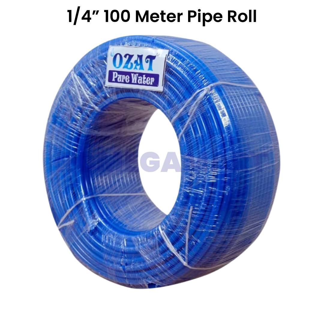 The Ozat Pure Water 1/4" blue Pipe Roll 100 Meter Plastic Material for Domestic Use - Om RO Filter is designed to provide reliable and efficient water flow in household RO systems. Made from high-quality plastic material, this durable pipe ensures long-lasting performance and resistance to leaks, cracks, and wear. The 1/4 inch standard size makes it perfectly compatible with most domestic RO water purifiers, ensuring easy installation and secure fitting.