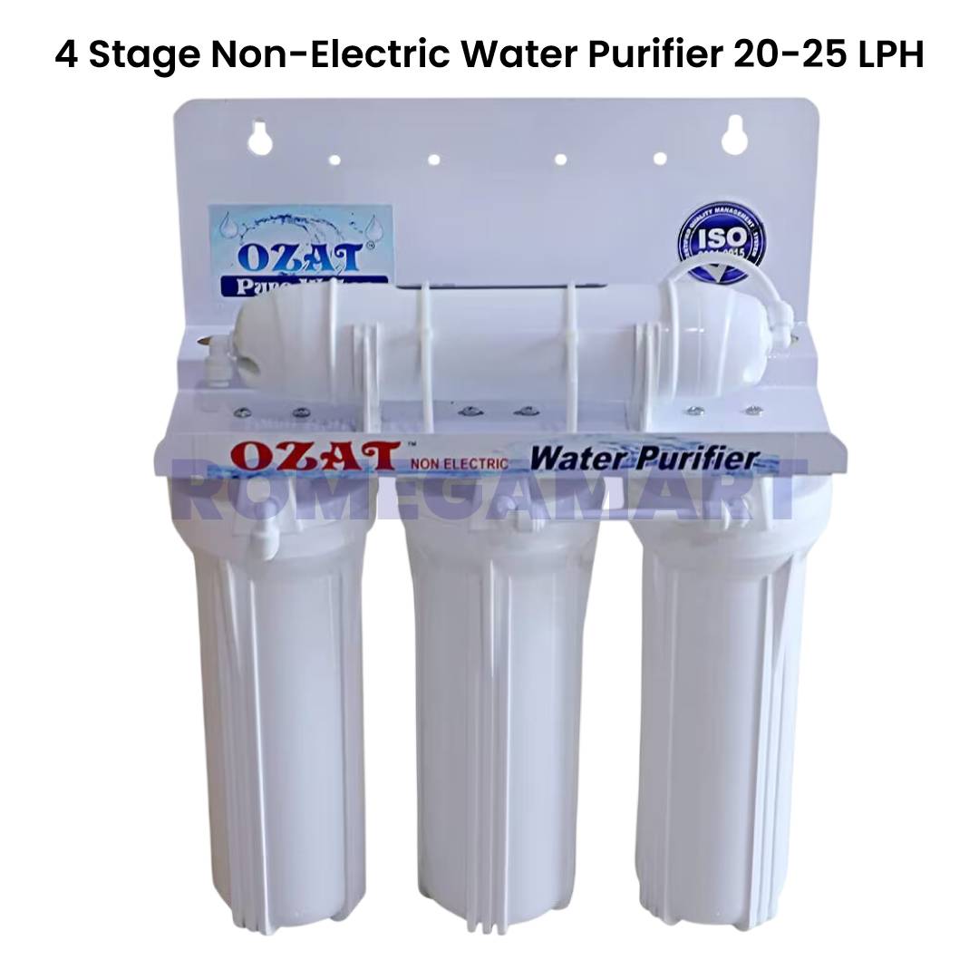 The Ozat Pure Water 4 Stage Non-electric Water Purifier 25 Liter is a reliable and cost-effective solution for safe drinking water at home. Designed with an advanced four-stage purification system, this gravity-based purifier effectively removes bacteria, sediments, bad odor, and harmful impurities without the need for electricity. Its spacious 25-liter storage capacity makes it ideal for families, ensuring a continuous supply of clean water throughout the day.
