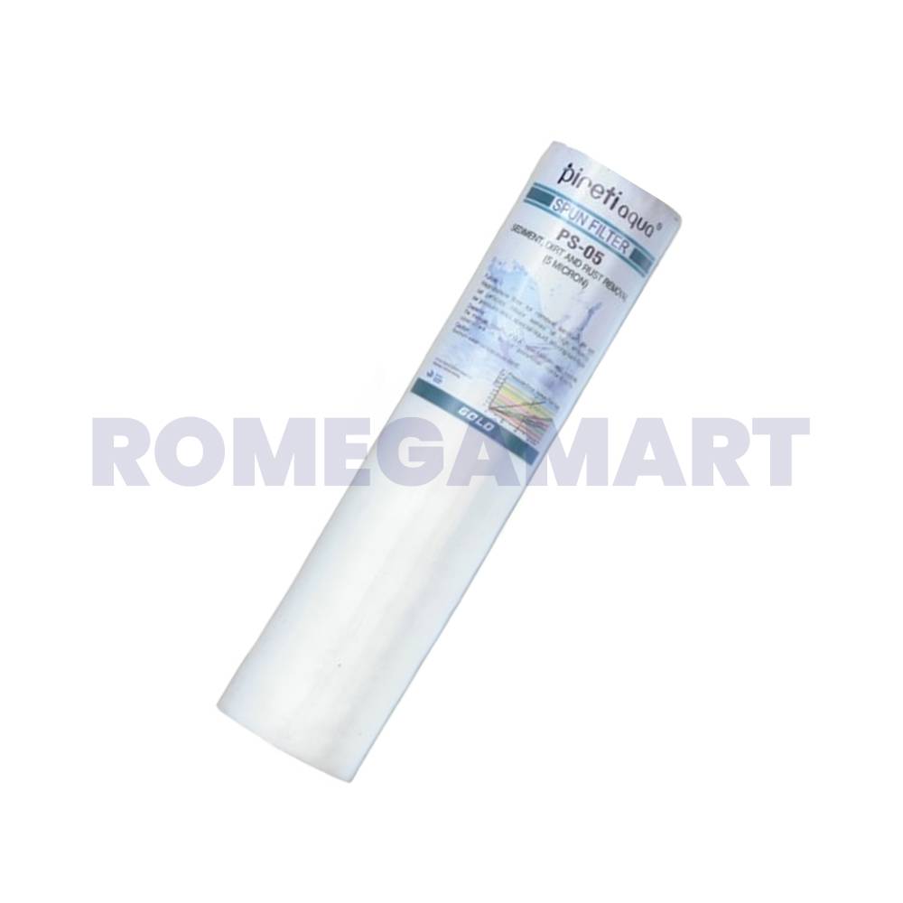Piretiaqua 10 Inch PS-05 Spun Filter Cartridge in white is a high-quality, durable, and efficient filtration solution designed for a wide range of applications, particularly in water filtration systems. Known for its superior performance, this spun filter is ideal for use in homes, offices, commercial setups, and industrial spaces to maintain the purity of water. By providing an optimal filtration process, it ensures that your water is free from sediments, rust, and other particulate contaminants, making it a crucial part of any water treatment system. The Piretiaqua PS-05 Spun Filter is designed with advanced spun filtration technology. It is made from 100% food-grade polypropylene fibers that are spun into a dense, tightly-wound structure. This ensures that the filter effectively removes suspended solids, particles, dirt, sand, and other debris from water. The density and tightness of the fibers trap particles of various sizes, making it ideal for pre-filtration in reverse osmosis (RO) systems, whole-house water filtration systems, and under-sink filters.