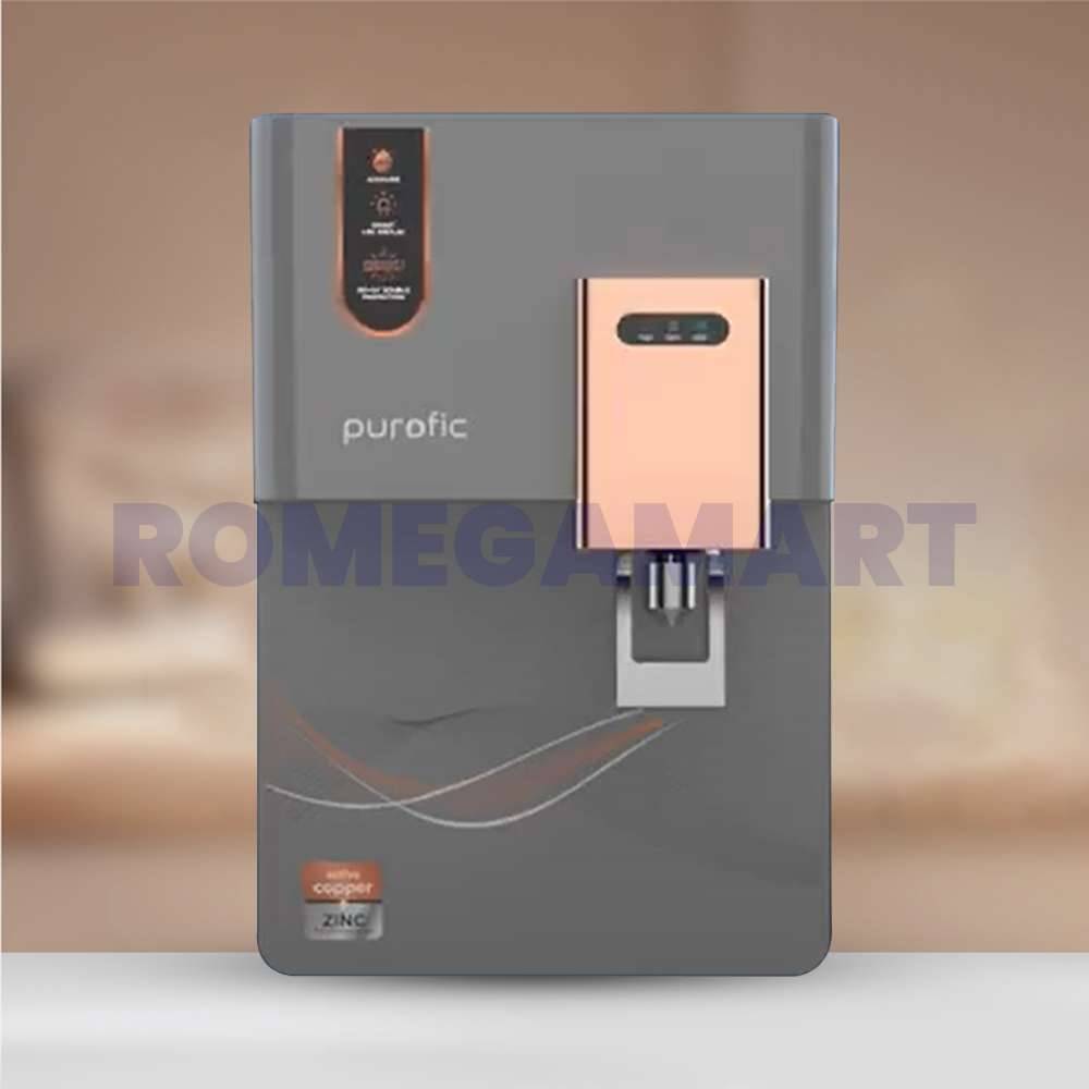 The Purofic 12 Liter Storage Water Purifier in grey with a copper color tap is a premium choice for both home and office use. Its large capacity and elegant design make it perfect for meeting daily hydration needs while adding a stylish touch to your kitchen or workplace.