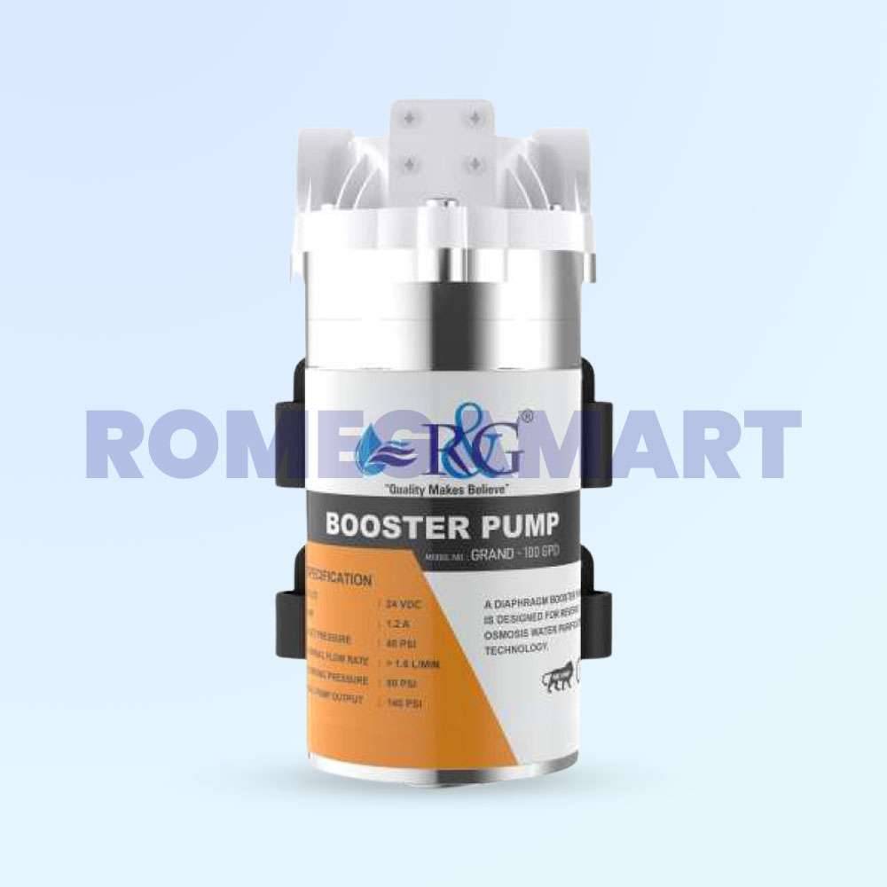 Boost the performance of your RO system with the Real Ganga RG Grand 100 GPD White Color Booster Pump, designed for domestic use. This high-quality 100 GPD booster pump ensures optimal water pressure, improving the efficiency of your water purifier and speeding up filtration. Its sleek white design and durable construction make it a great choice for households looking to enhance their RO system. Built for longevity, this pump is ideal for areas with low water pressure and ensures consistent, clean water every time.