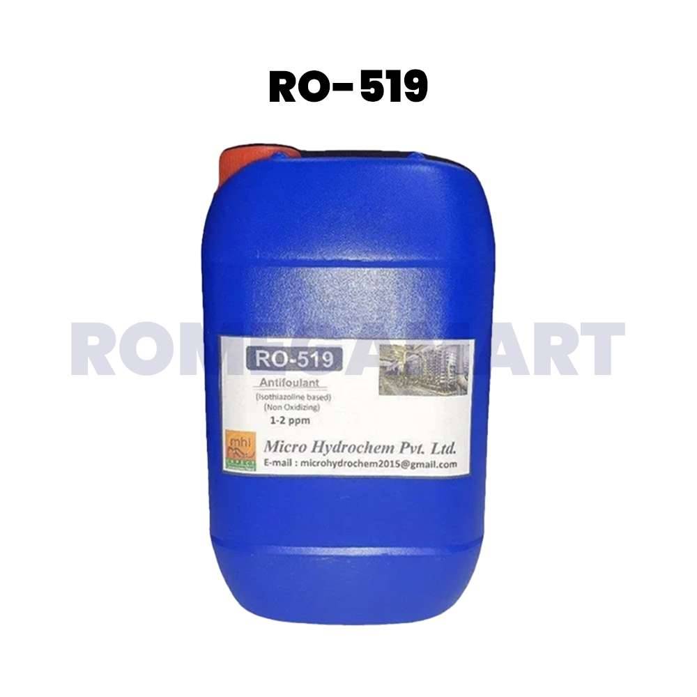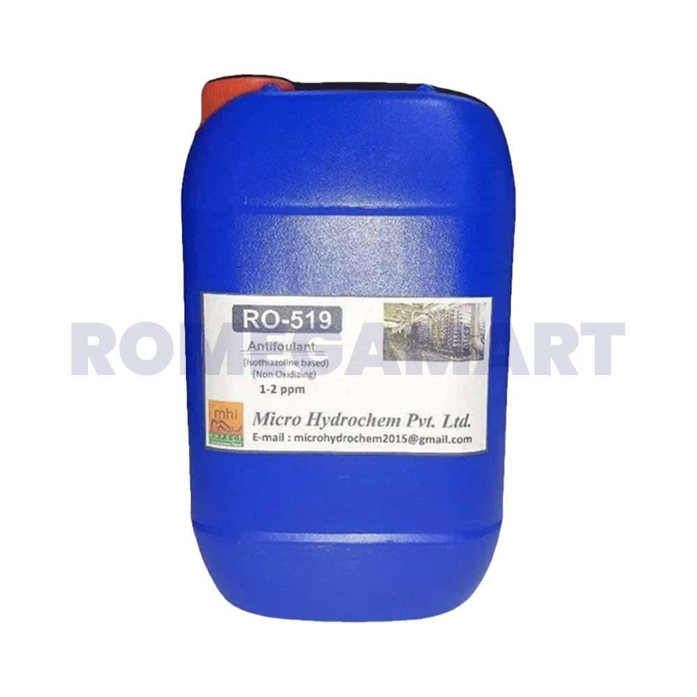 RO-519 Antifoulant/Biocide is a highly effective solution designed to prevent fouling and control microbial growth in industrial reverse osmosis systems. With a recommended dose of 1-2 ppm, this 10 KG drum from Micro Hydrochem Pvt Ltd ensures enhanced membrane protection, system efficiency, and longevity.