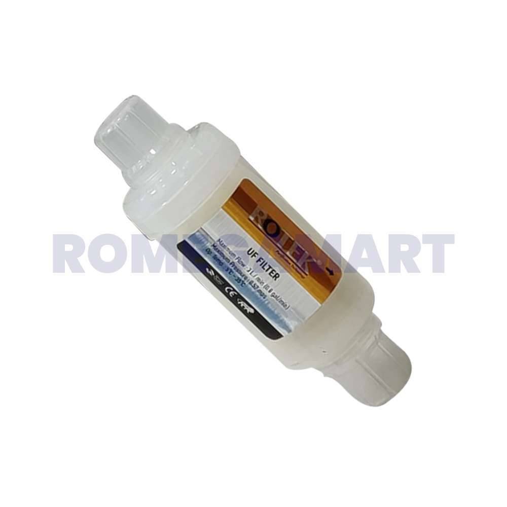 The ROTEK 4 Inch UF Reverse Osmosis Filter is designed for use in domestic RO systems. Featuring a transparent body, this ultrafiltration (UF) Filter provides excellent visibility and monitoring of the filtration process. It effectively removes bacteria, viruses, and other fine impurities, ensuring clean and safe drinking water. The compact 4-inch size makes it suitable for various residential setups, and its durable construction ensures long-lasting performance. The ROTEK UF Filter is easy to install and maintain, making it a reliable and efficient choice for enhancing water quality in home RO filter systems.