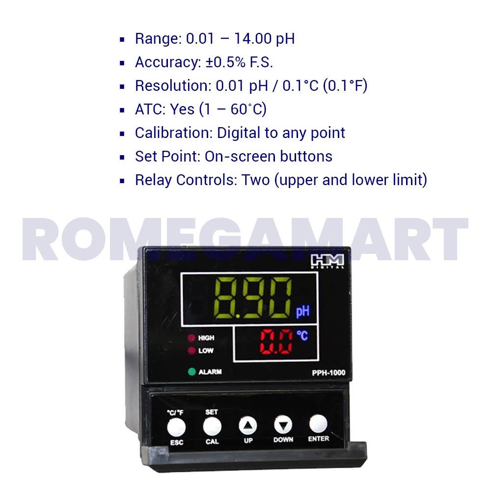 SPECIFICATIONS: Ideal for controlling pH in commercial applications 4-20mA output signal Digital calibration On-screen temperature display Fully adjustable relay control with 2 set points (High and Low) maintain the desired range Includes ¾” sensor probe The PPH-1000 from HM Digital is a single-line pH and temperature controller designed for industrial and commercial systems. With automatic temperature compensation and a bright LED display, it offers precise monitoring and control of pH levels. Featuring a 4-20mA output signal, digital calibration, and fully adjustable relay control all ro spare parts with two set points, it ensures accurate and reliable operation. The included ¾” sensor probe enhances convenience and usability. Ideal for maintaining optimal pH levels in various commercial applications.