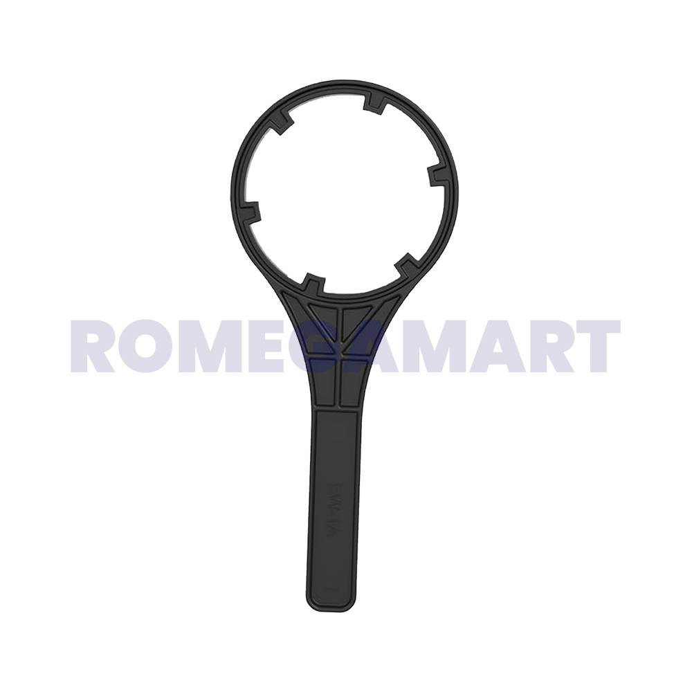The Single Spanner in black color, crafted from durable plastic material, is an essential tool for domestic RO (Reverse Osmosis) water purification systems. Specifically designed for easy installation and maintenance, this spanner is used for tightening or loosening filters, membranes, and other components within the RO system. Its robust plastic construction ensures long-lasting performance, making it ideal for household water purifiers. The compact, lightweight design provides a comfortable grip, offering convenience and ease during maintenance tasks. This spanner is a must-have accessory for ensuring the smooth operation and optimal performance of your domestic RO system.