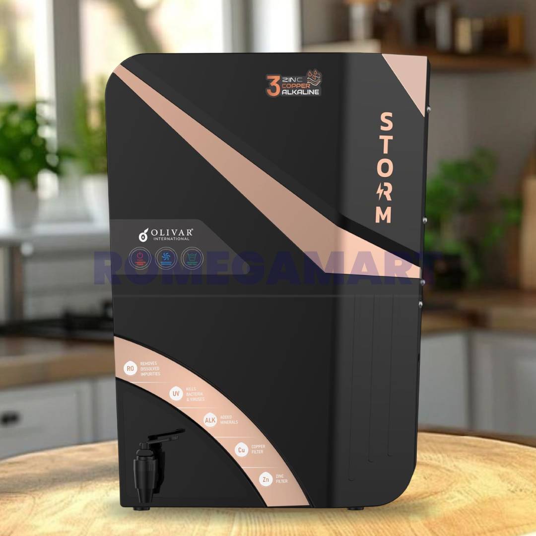 The Storm RO+UV+TDS+ALK+CU+ZN Water Purifier by RGV Enterprise is a powerful and reliable solution for safe drinking water at home. Designed with advanced RO and UV purification technology, it removes harmful impurities, bacteria, and viruses while maintaining essential minerals through an intelligent TDS controller. The alkaline feature enhances pH balance, promoting better hydration and improved immunity.