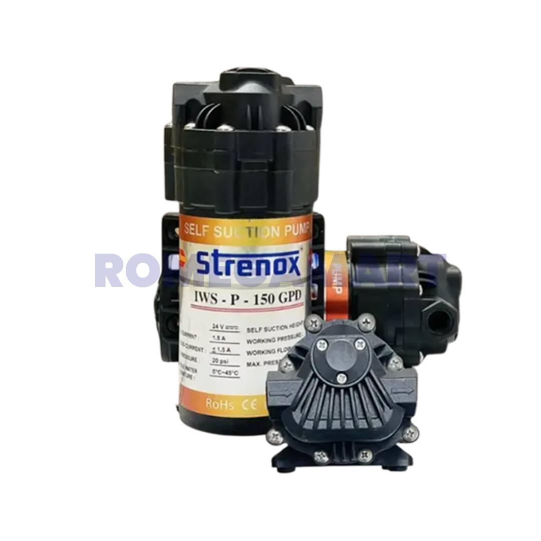 The Strenox Booster Pump IWS P 150 GPD from Infinity Water Solution is designed to provide consistent water pressure for domestic RO and UV purifiers. Its durable black metal body ensures long-lasting reliability, making it ideal for households with higher water consumption needs.